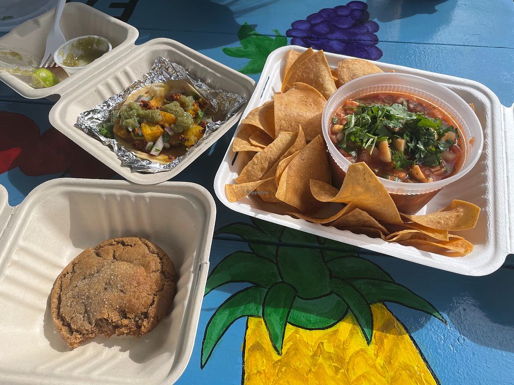 First time here and it was amazing. I ordered the atomic burger, ceviche, 2 tacos and the maple pecan cookies. Everything was made quick and was warm. It is very refreshing to go to a food truck and not feel over stuffed the meal was super easy to eat filling but I don’t feel sluggish after. The ceviche is so yummy as someone who is Spanish and it is so hard to find vegan alternatives to authentic dishes. I highly recommend and will definitely come again. P.S the atomic burger is spicy!!! lol but so good!!