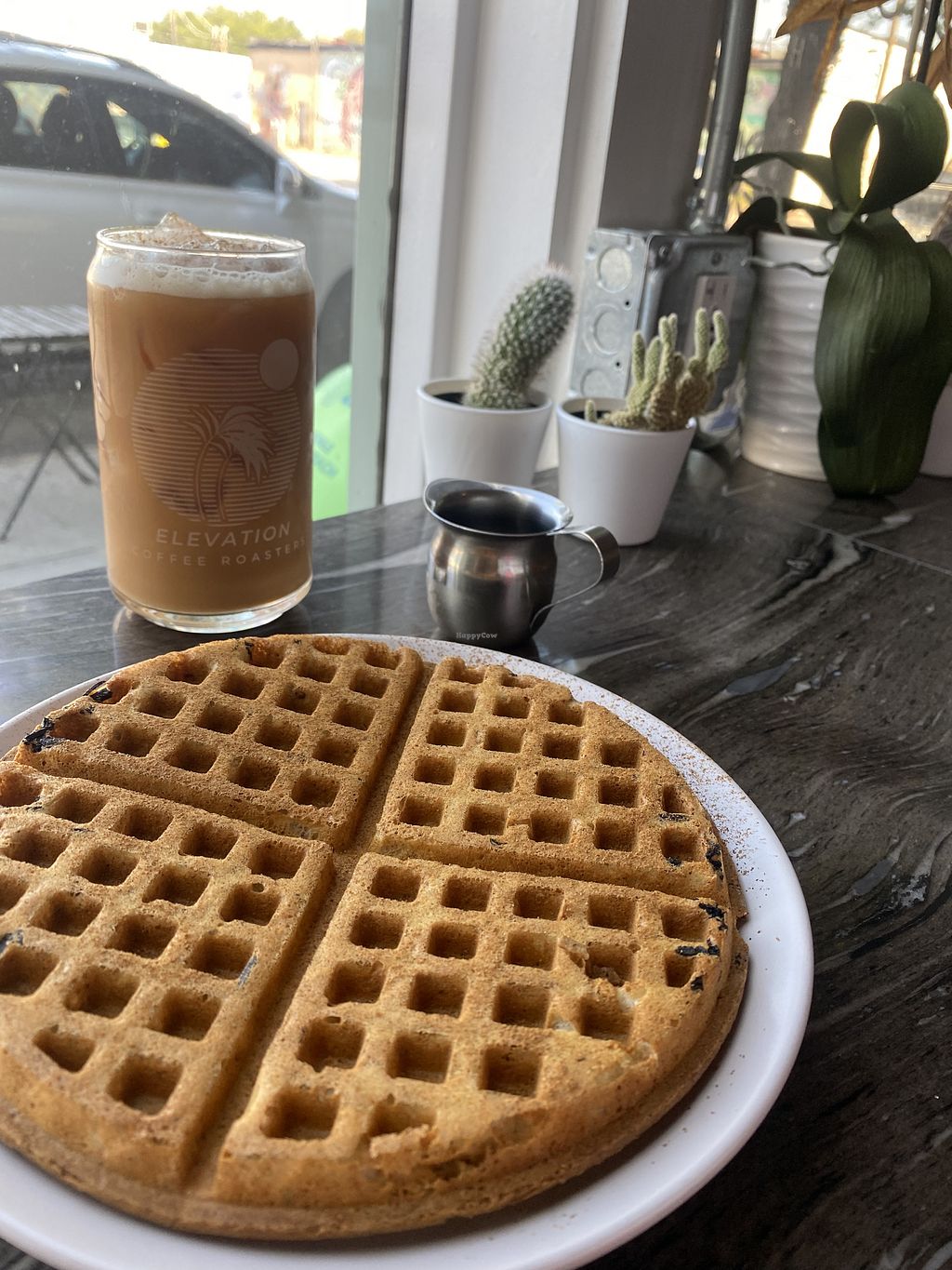 Nice decor and seating in the front and back. Oatmilk latte was sooo smooth. Service was good. We got the vegan burrito and oatmeal. They were out of vegan waffles!