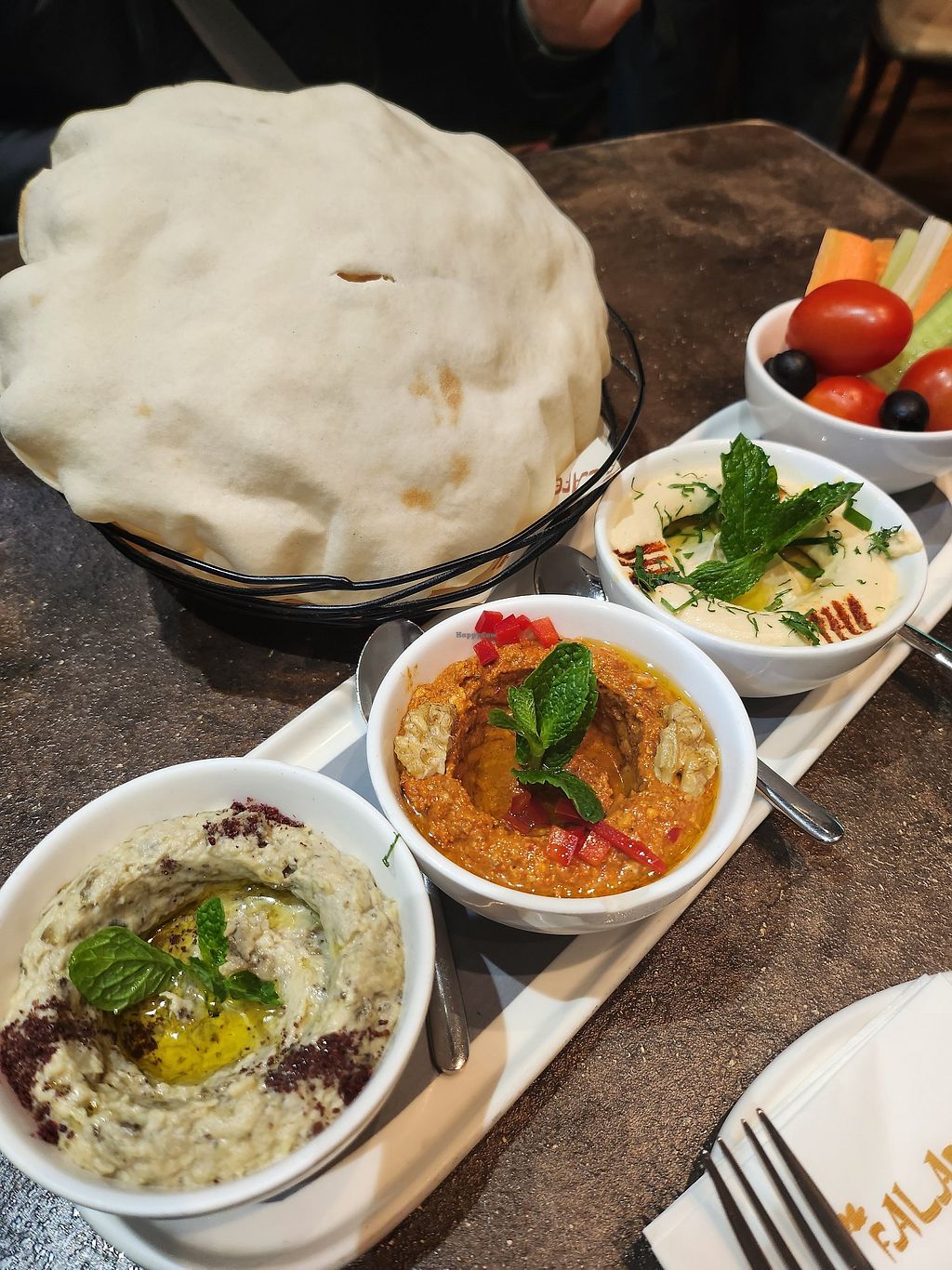 The first thing that I noticed when entering is, that literally there are apparently no local people anywhere, it's a fully western place and accordingly the staff speaks perfect English which makes things a lot easier. I had the vegetable combo and a falafel wrap. I thought that the vegetable combo comes with all different dips offered, but you have to choose one. I took hummus which tasted great but be aware that the puff bread costs extra and has to be explicitly ordered. With just the veggies it won't fill you up. The falafel wrap was very fresh and tasty even though I'm not sure if the sauce was vegan. Overall it was a really pleasant experience and the taste is outstanding but it is a little more pricy than your average place.