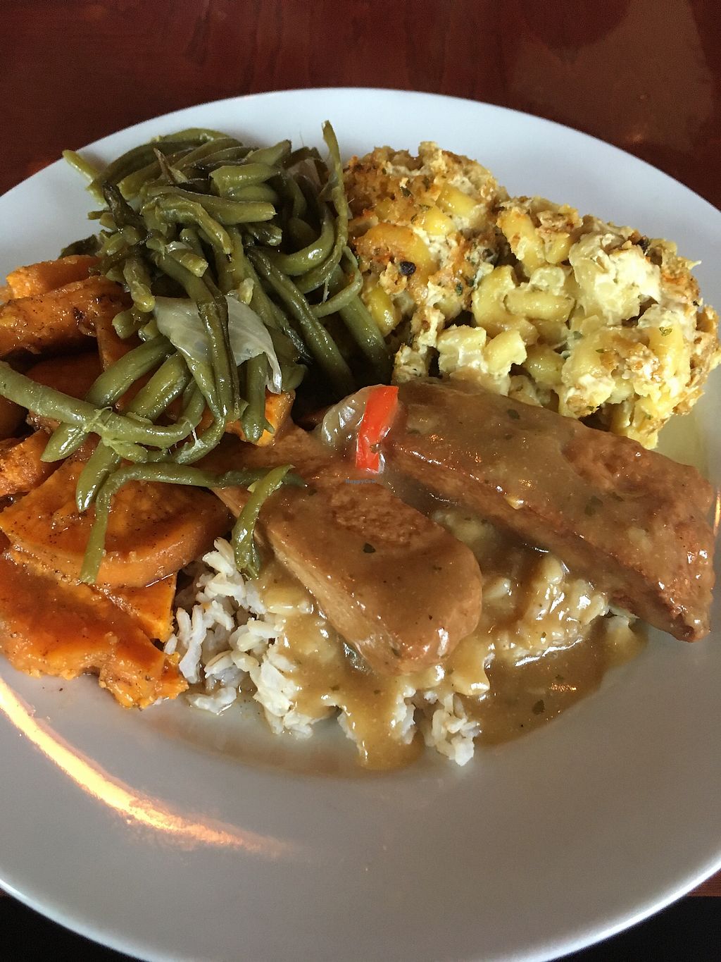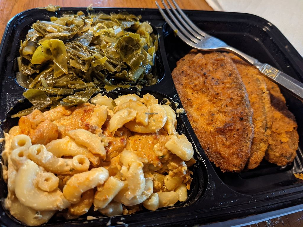 Mac and cheese, collard greens and yams