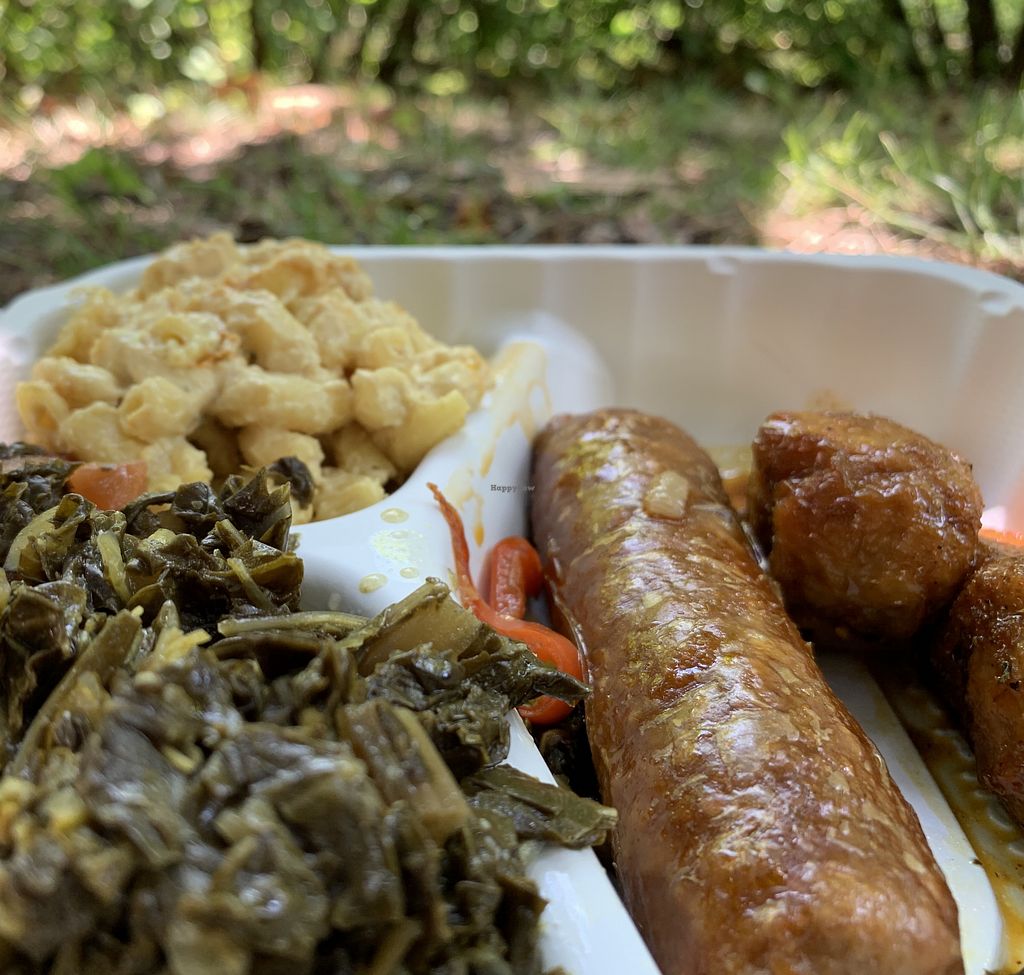 “Wings” + sausage and peppers + greens + mac and cheese...