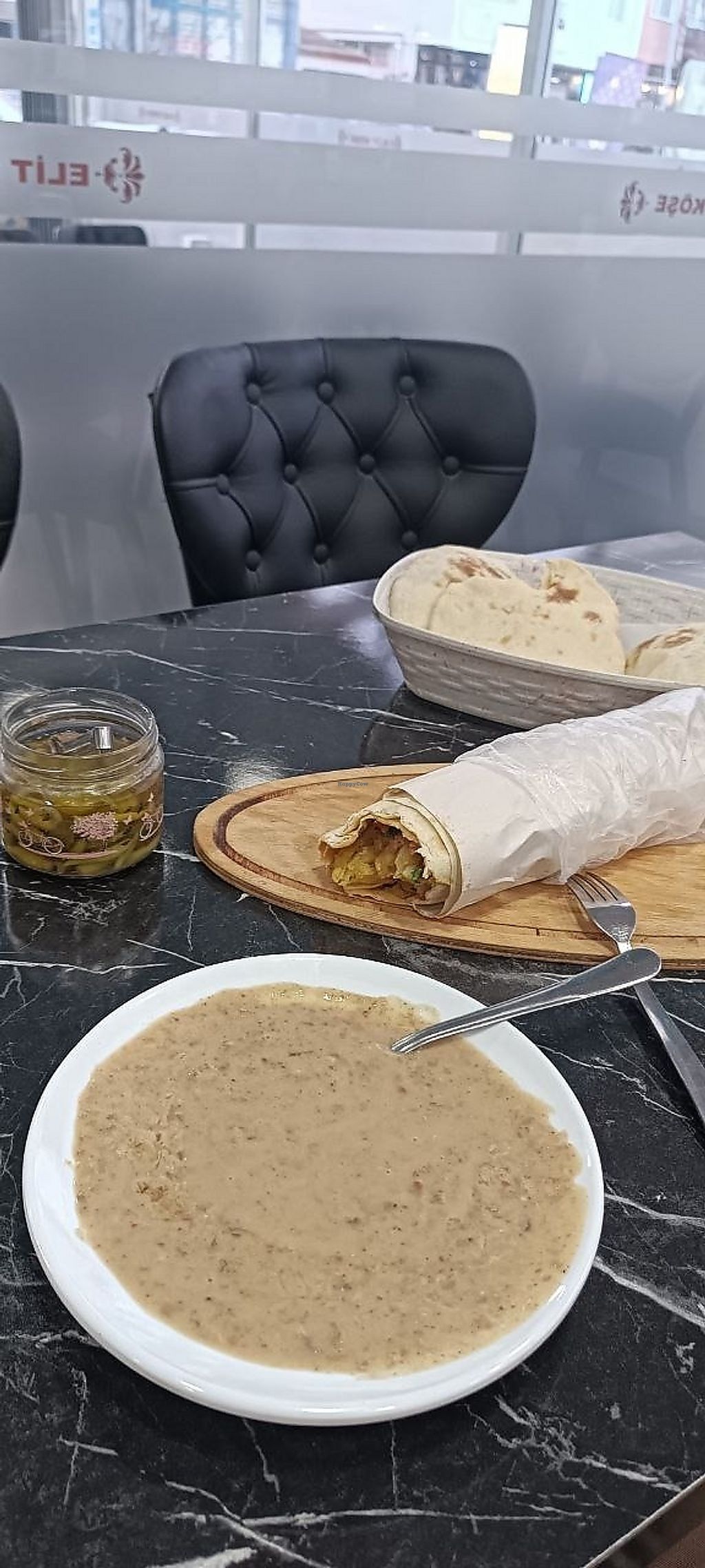 Mercimek corbasi, nohut sulusu, pirinc pilavi, coban salata. yaninda g…