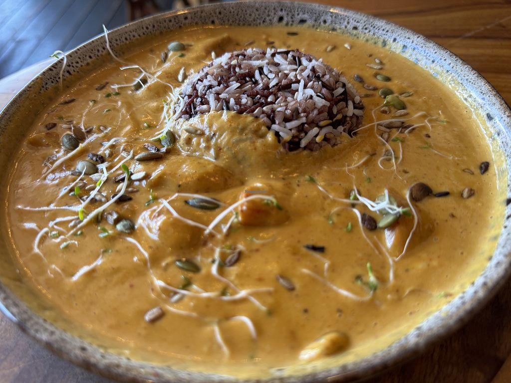 This is my second time here and the Thai jackfruit curry is just as delicious as I remember it. Even my non-plant based eating brother loves this curry (he’s been back for it three times!). The cocomari while very tasty, was better on the first visit. The nachos were nourishing but better as a lunch dish. The buffalo cauliflower is another one of my favourite menu items. Knocked back two Garden of Eden cocktails ... pretty lush and more-ish. The location is great. Service is always good.