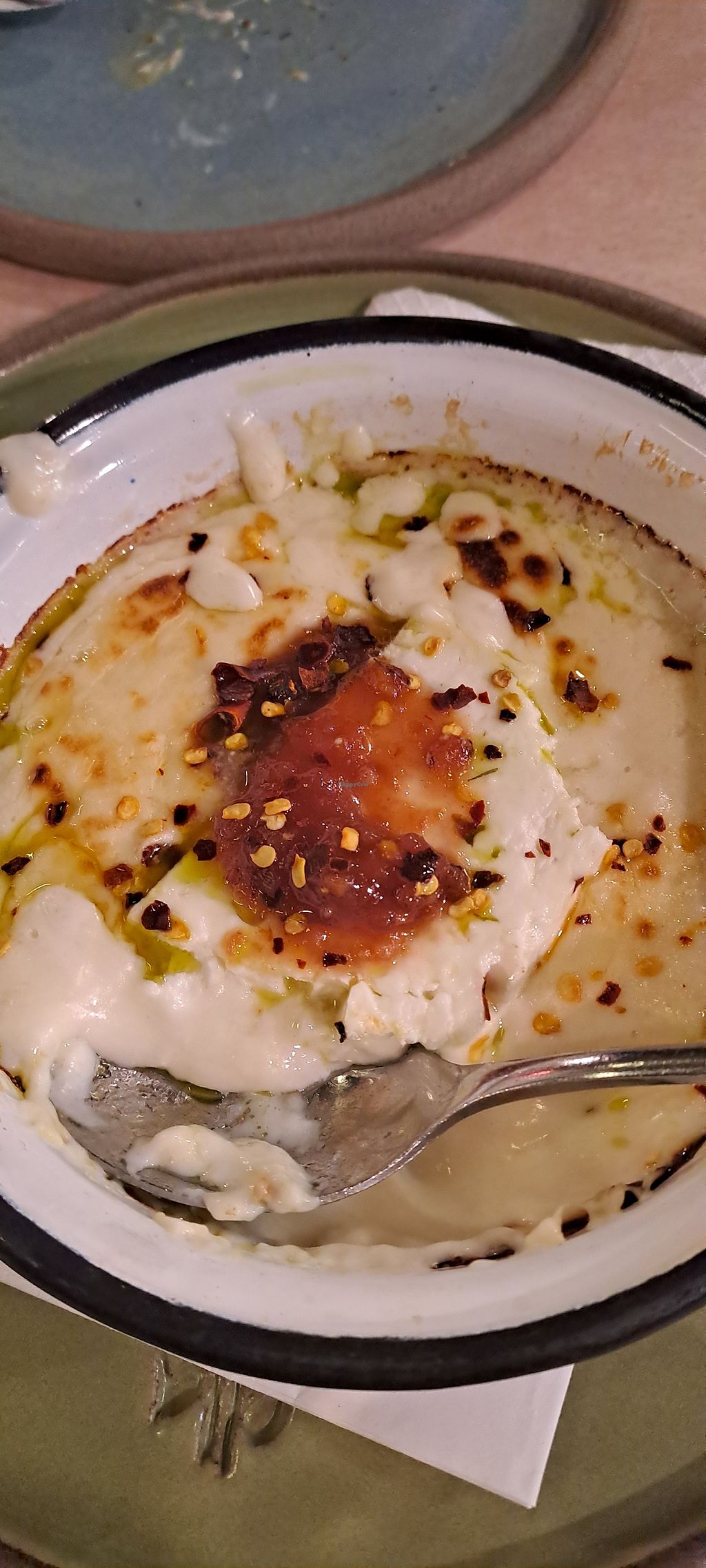 Over roasted vegetables with houmous