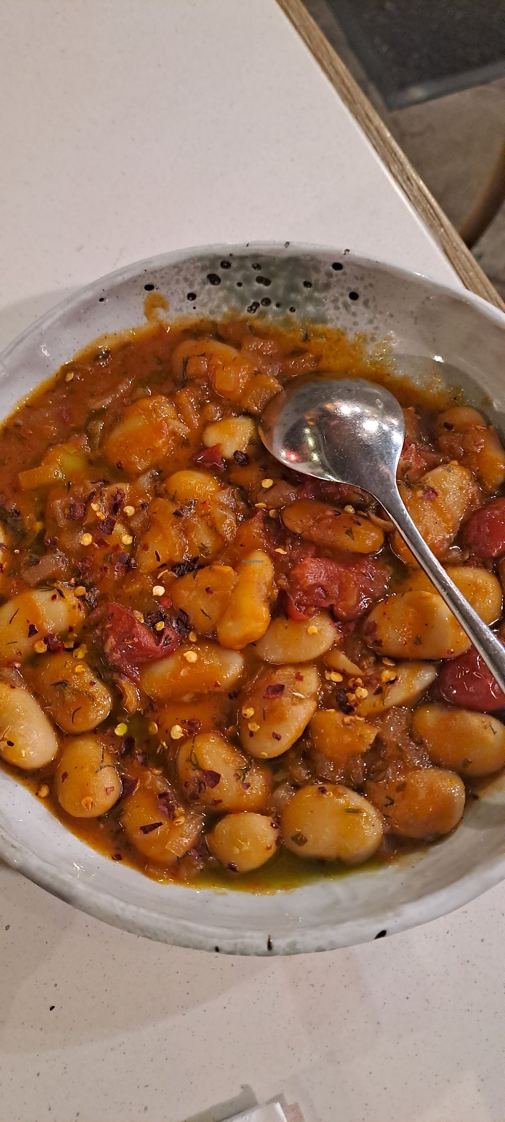 Gigantes beans with lentil puree