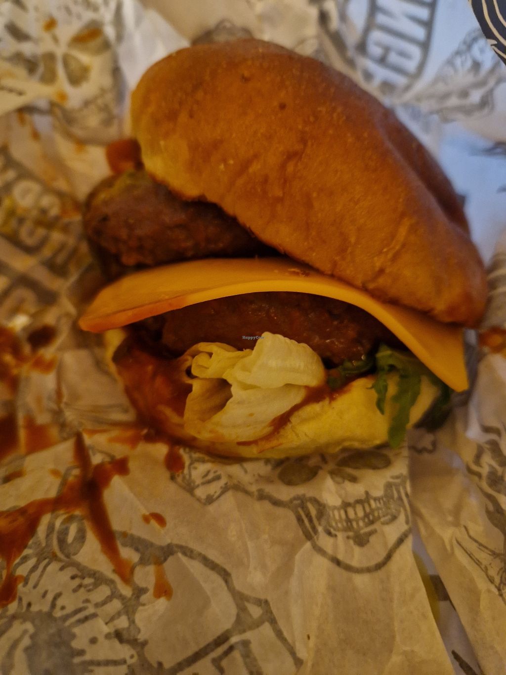 Beyond burger with vegan cheese was super juicy and satisfying, nice double cooked fries with great vegan Mayo.