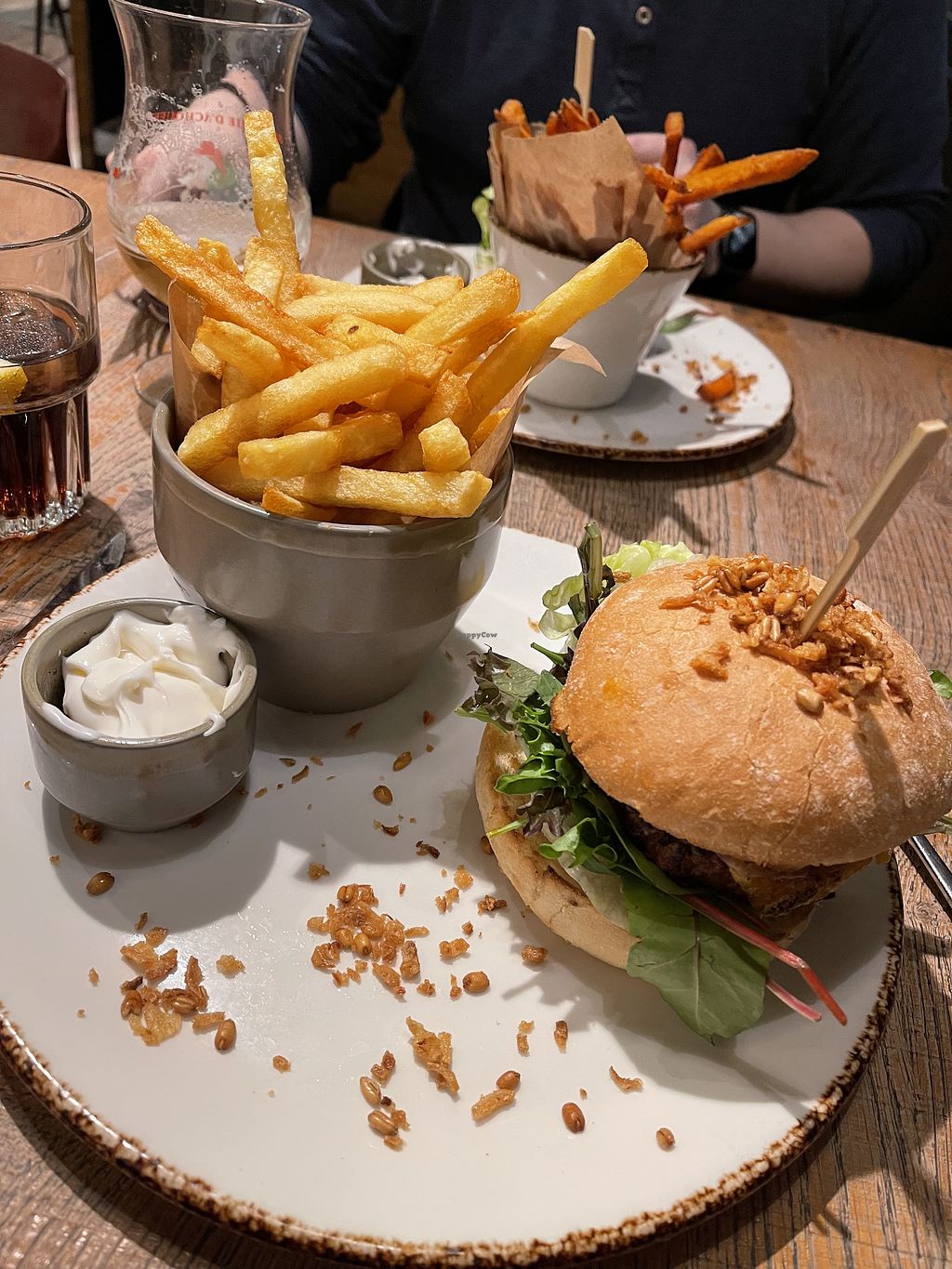 Vegan Veggie burger with fries with vegan mayo