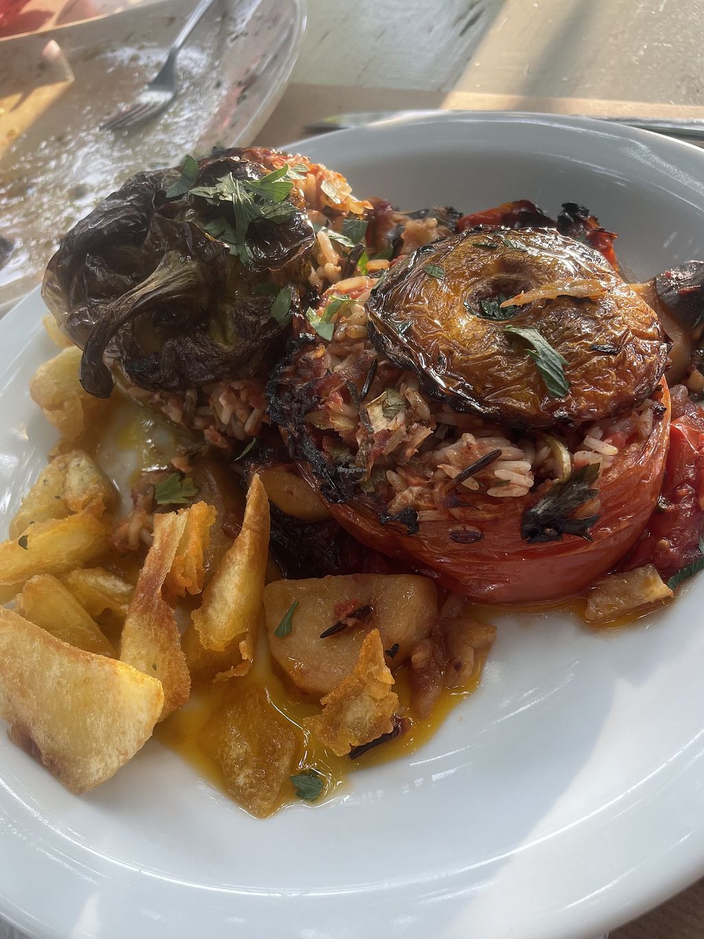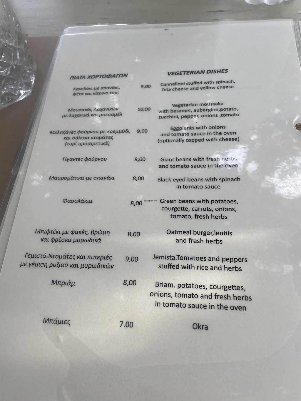 This is the most vegan-friendly restaurant in Agios Nikolaos. They have a page of traditional Greek vegetarian dishes, some of which are also vegan, as well as a few starters which are vegan. My favorites were the Briam and Jemista!