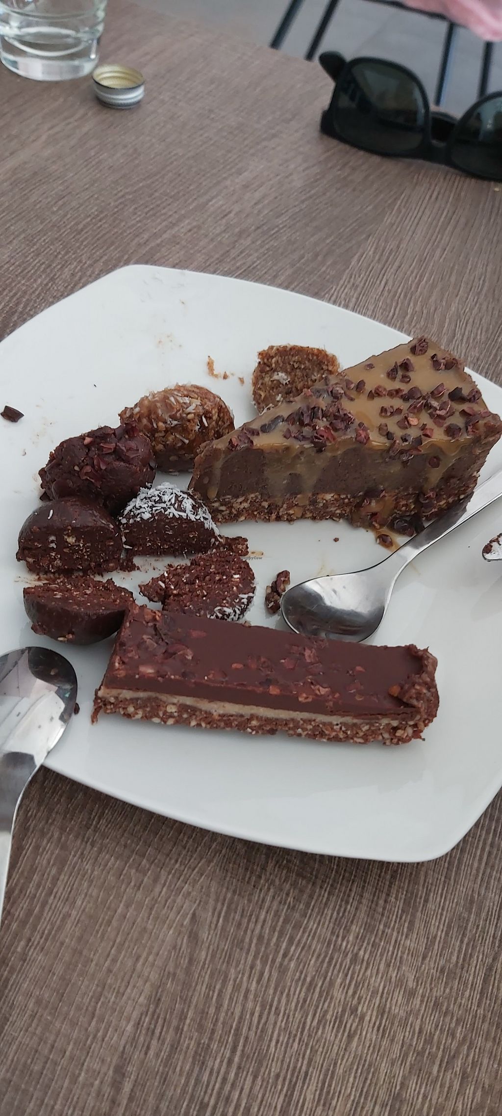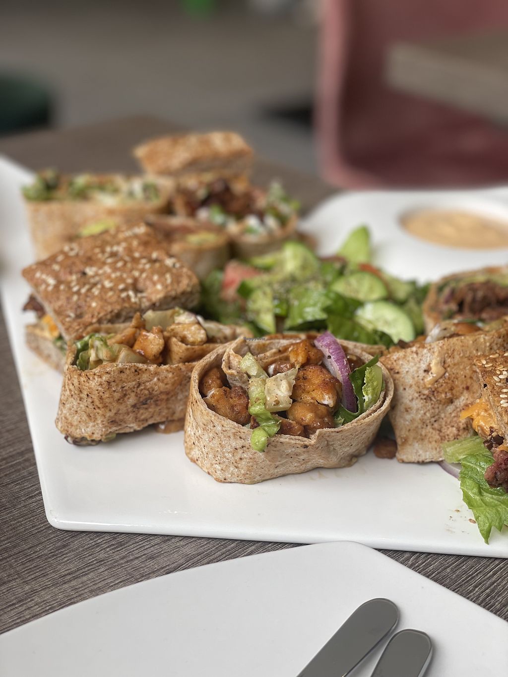 We had the taster platter for 2 because we were really hungry. It was filling and tasty. We couldn’t finish it and took it back to the hotel room along with a chocolate peanut butter dessert which was delicious. Highly recommend this place for vegans!