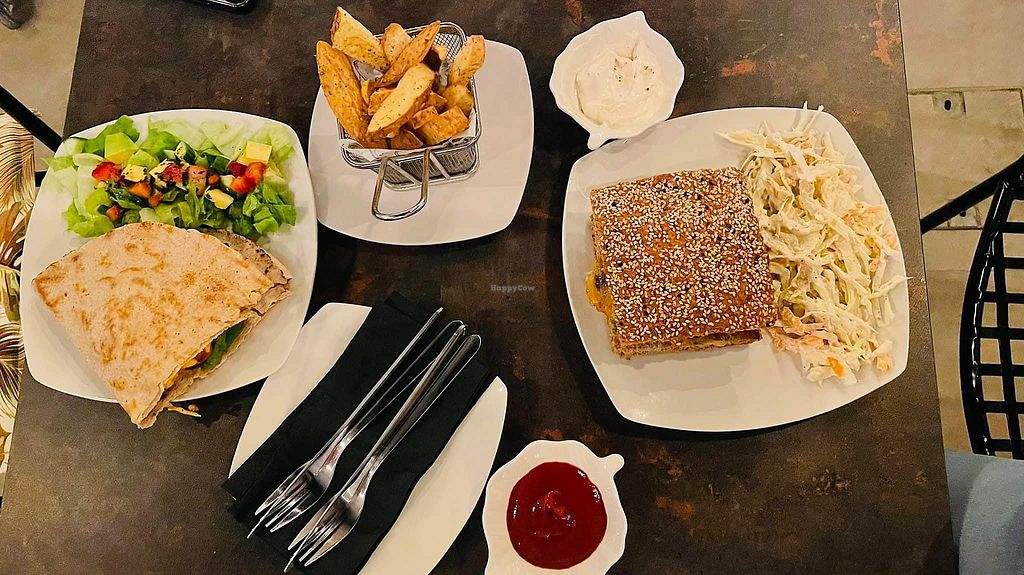 Me and my partner visited here when we weren’t sure where to go. We’d previously visited the one in Nicosia and thought we’d give this one a go and try some different options. First of all the venue is stunning, so well decorated giving it a high end feel. We ordered a vegan cheese wrapped in filo pastry for starter (sorry I can’t remember it’s name) we then ordered the hot dog and bbq chicken kebab. The starter was lovely, bit of an acquired taste as it was very strong but we really enjoyed it. We got given the normal greek gyros for our main which even though it wasn’t what we ordered it was lovely and so was the hotdog. The coleslaw on the side was fantastic. All in all this place is lovely and it’s nice to see a fully vegan restaurant in limassol.