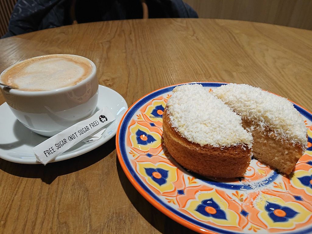 Dessert: Café Latte (with soy milk) and vegan mini cake