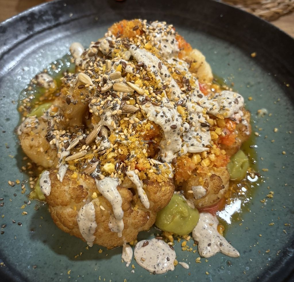 Sólo probé la coliflor asada pero estaba espectacular. Tenían varias opciones, desde tacos a berenjena asada. El sitio es bonito. En fin de semana recomendaría reservar, ya que fuimos un miércoles y estaba prácticamente lleno.