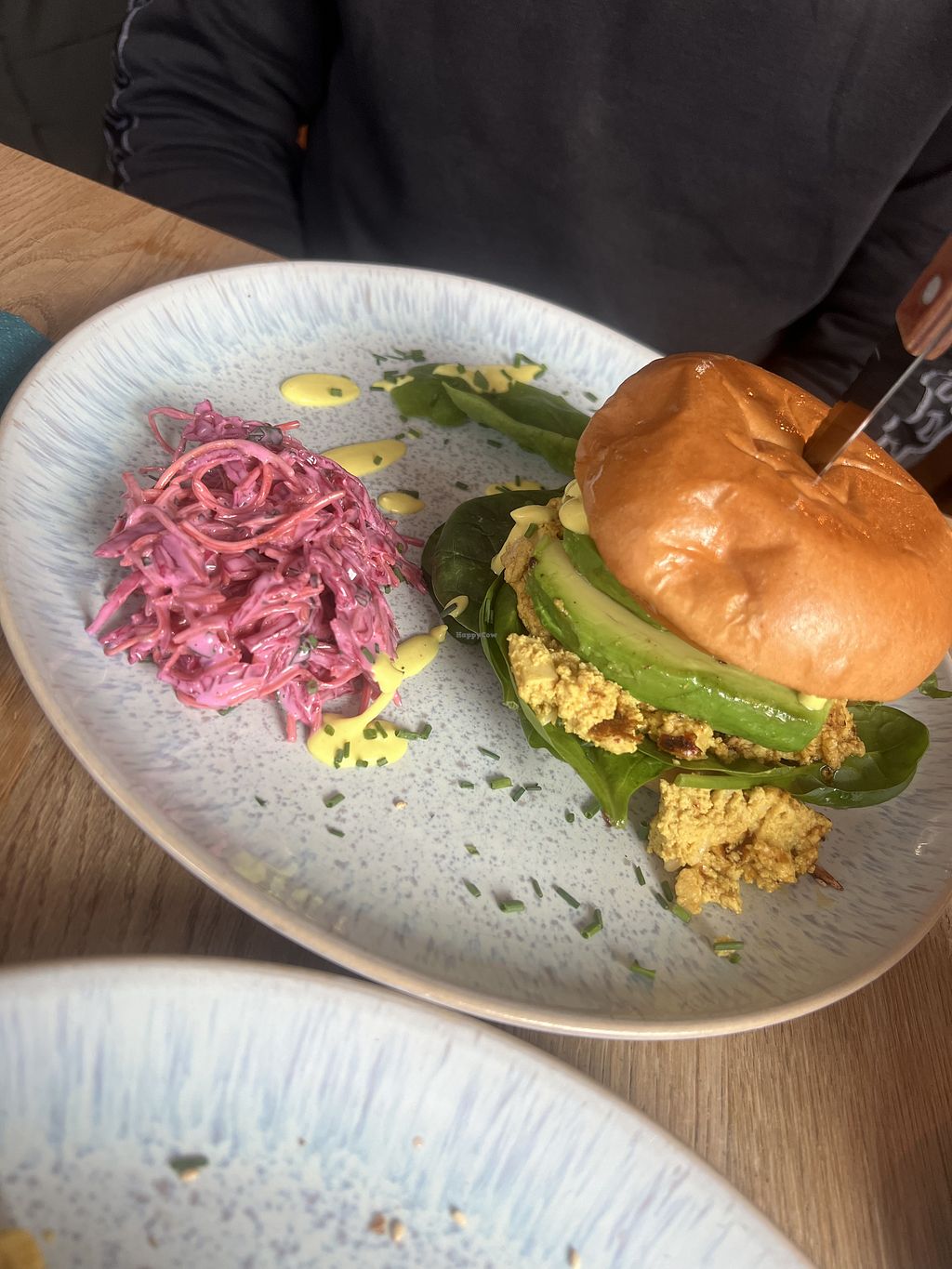 The breakfast burger with tofu scramble and Beyond Sausage was a delightful combination of flavors. The tofu scramble was perfectly seasoned, and the Beyond Sausage added a tasty twist to the burger. The ambiance was cozy and inviting, and the service was excellent. I highly recommend this place for a delicious and satisfying vegan meal!