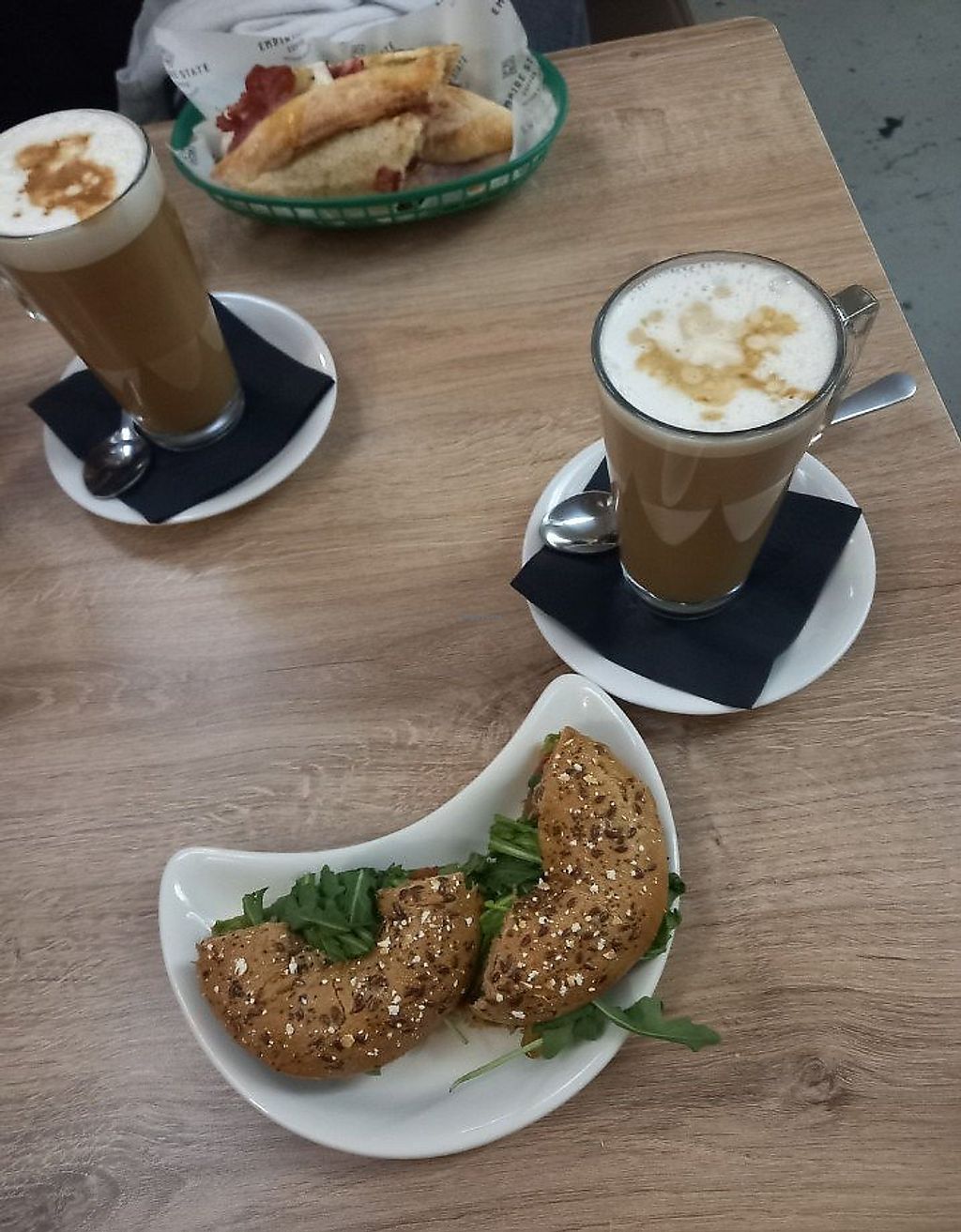 Not as many options for vegans as I would like but I tried the rockefeller bagel without the cream cheese so it consisted of avocado, tomato and rocket which is a very basic vegan option. They also have a falafel panini
