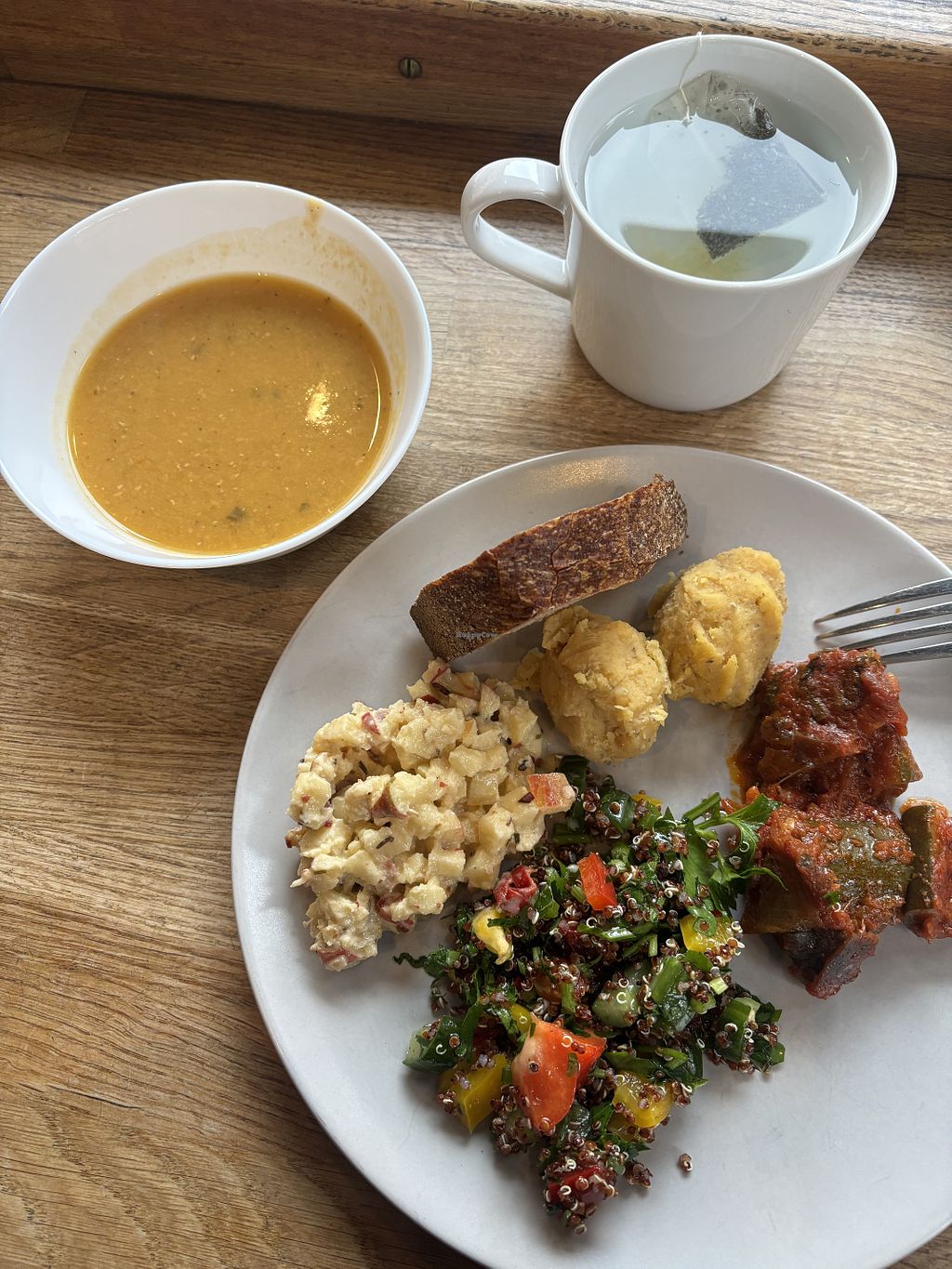 On the day I visited all their food was vegan. I had a piece of pie with three sides, a soup and bread. While the salads and ratatouille didn't knock my socks off, the pie and the soup were super delicious.