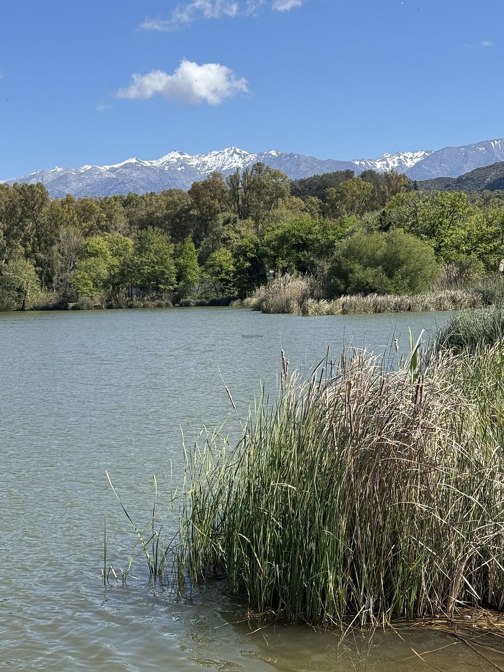 Enasma Cafe is located at Lake Agia, which is a nice setting and the café is lovely, too, with a small pond and water birds frequenting it. However, we were a bit disappointed because we had the vegan sandwich with fries, and while the fries were good, I did not like the taste of the cheese at all. My husband thought it was ok, but to me, the taste was overpowering and too greasy.
