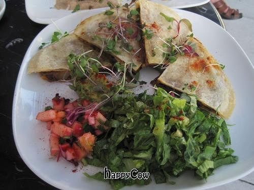Read moreThe stuffed dates with macadamia nut pate and walnut "honey" were so good that my friend got a second order of it to go. The French lentil walnut spread with crostini (it also had a bunch of arugula) was really great and I kinda licked the container after we finished. The side salad, which I got with vegan Caesar dressing due to the novelty of vegan Caesar was quality. The marinated mushrooms with smoked pecan pate, cornichon, house made prune chutney, French mustard and crisp crostini was rich and flavorful and very much like something you'd get at Millennium, but kind of a small portion, which actually suited the two of us fine because we'd ordered so much. We also got the quesadilla with cashew pecan chipotle cheese, which apparently has a different filling every day.