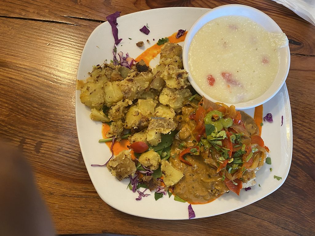 Spicy Portobello Wrap (a special of the day), Tempeh Club, and pink po…