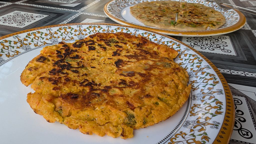 Great view of palace, nice rooftop location. Good variety of food in the menu. The vegan omelette came with lots of veg but it was very dry and stodgy - really needed some sort of sauce to go with it. The veg paratha had a lovely taste but was also dry. Cheap price.