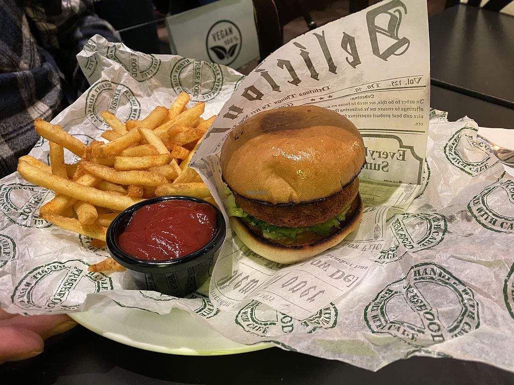 We had a smoked tofu sandwich and a cheese burger. They have really good meat replacements. The fries were amazingly seasoned and the smoked tofu tasted really unique.