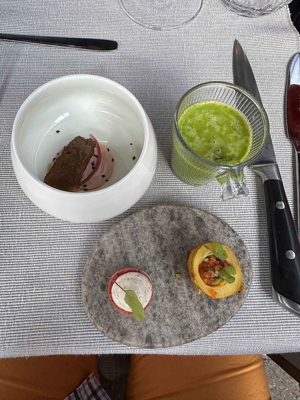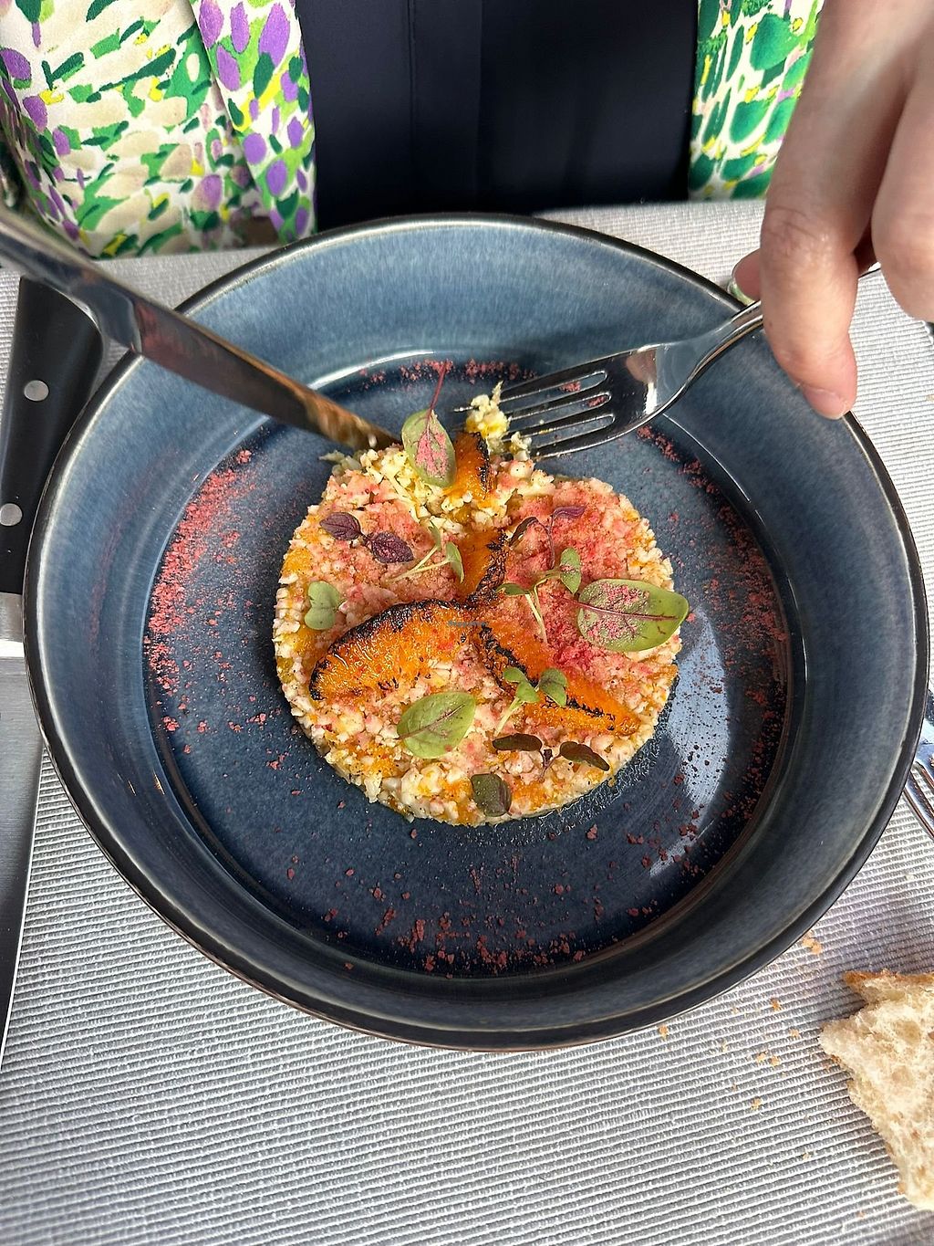 Restaurant choisi tout d'abord par sa localisation et sonoriginalité, je m'y suis rendu pour fêter mon anniversaire, en couple. Au téléphone, on me confirme qu'un menu vegan pourra m'être servie. Le chef est venu s'en assurer de lui même à la commande ainsi qu'à d'autres reprises. C'était recherché et délicieux, merci !