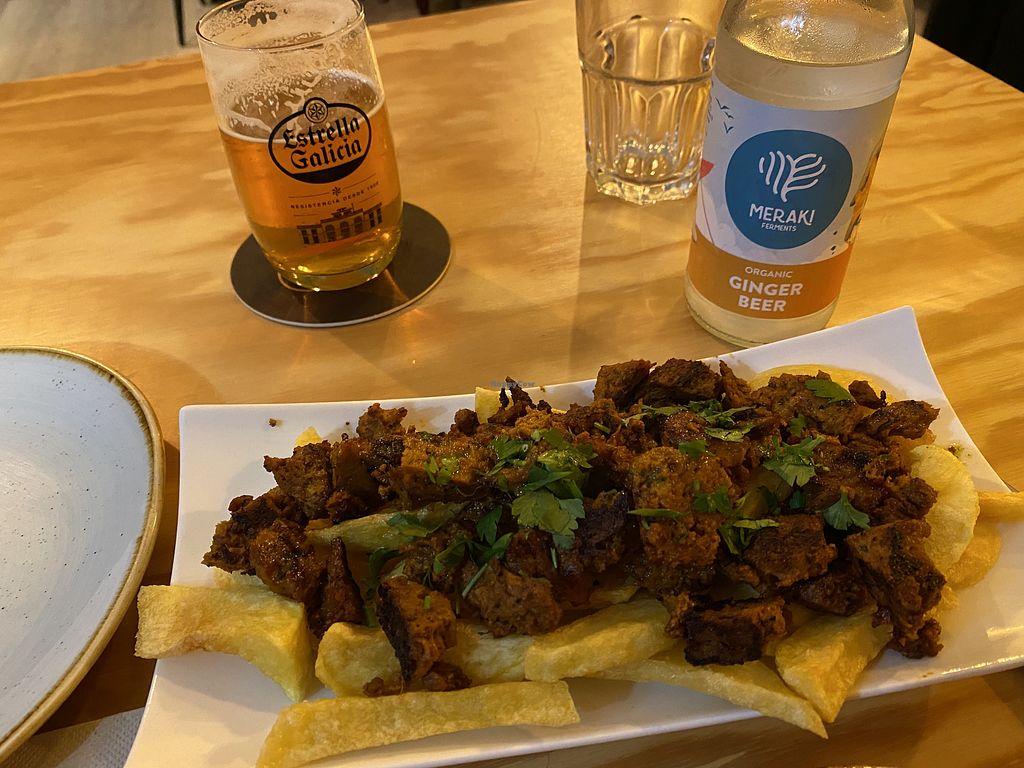 Plato del dia, seitan con salsa de mostaza y patatas 💕👌
