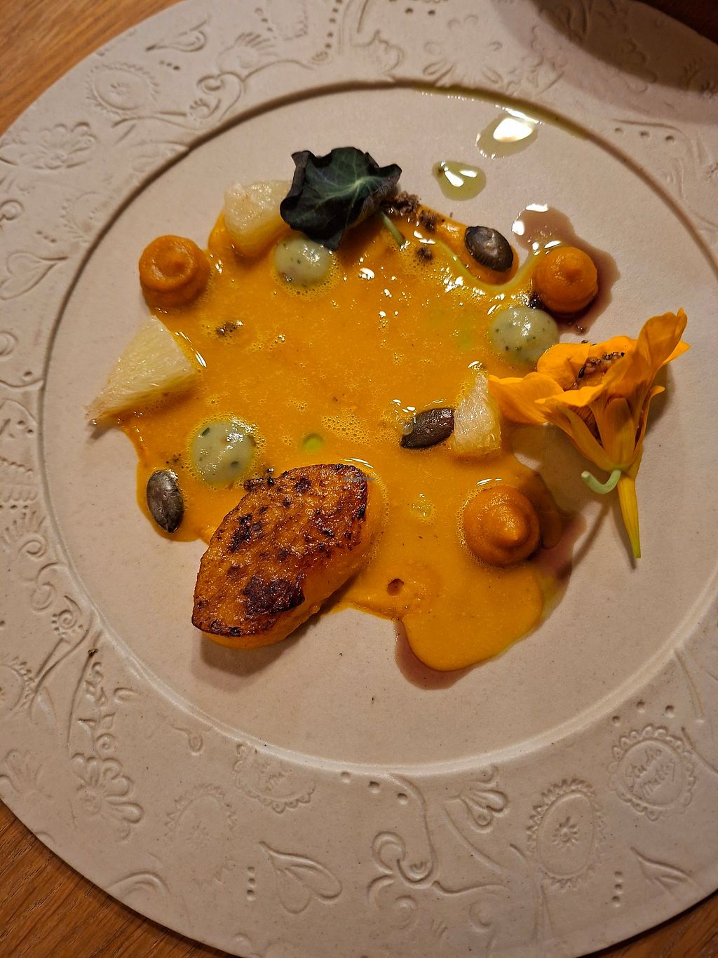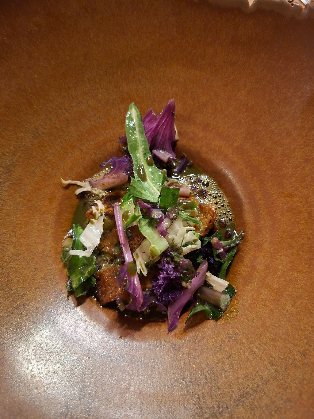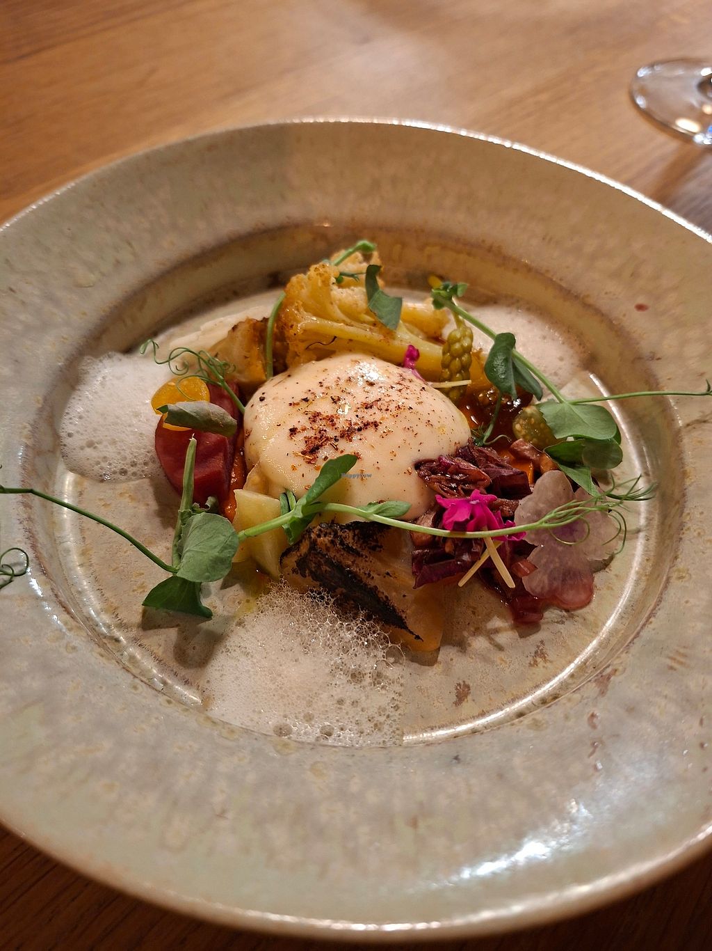 We had a very lovely evening here. The staff is very friendly, the space has a nice vibe and despite the fancy food the atmosphere is casual. So far, so good. When it comes to the food, our experiences were very mixed. Some dishes were absolutely stunning, for example a kohlrabi, nut and lentil combo; a beetroot tortellini in mushroomy broth; and a colourful plate full of various seasonal veg and fruit that delivered so much more flavour than you could possibly expect. These dishes were 10/10. Unfortunately, not everything was as good, especially the desserts, and one dish was quite an unbalanced assault of alliums.