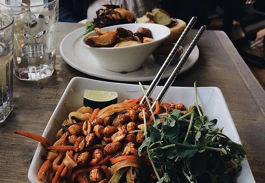 When it comes to Vegan food, they're one of the best in Halifax. Their menu strikes a balance between comfort food and more adventurous fare, and I can't think of a single thing that I haven't liked. My current favourites have to be the cauliflower steak, the caesar salad, their burgers, their pad thai, and for brunch their scramble skillet is off the hook amazing, and a large portion. They're in an up and coming hip neighbourhood, right next to some funky bars (Lion & Bright is a great one to check out and right around the corner in the same building). Can't recommend them enough. Interior is also a great atmosphere, a mix of upscale and hip.