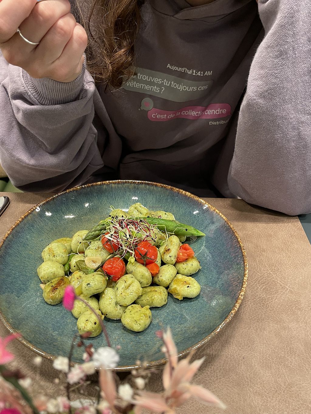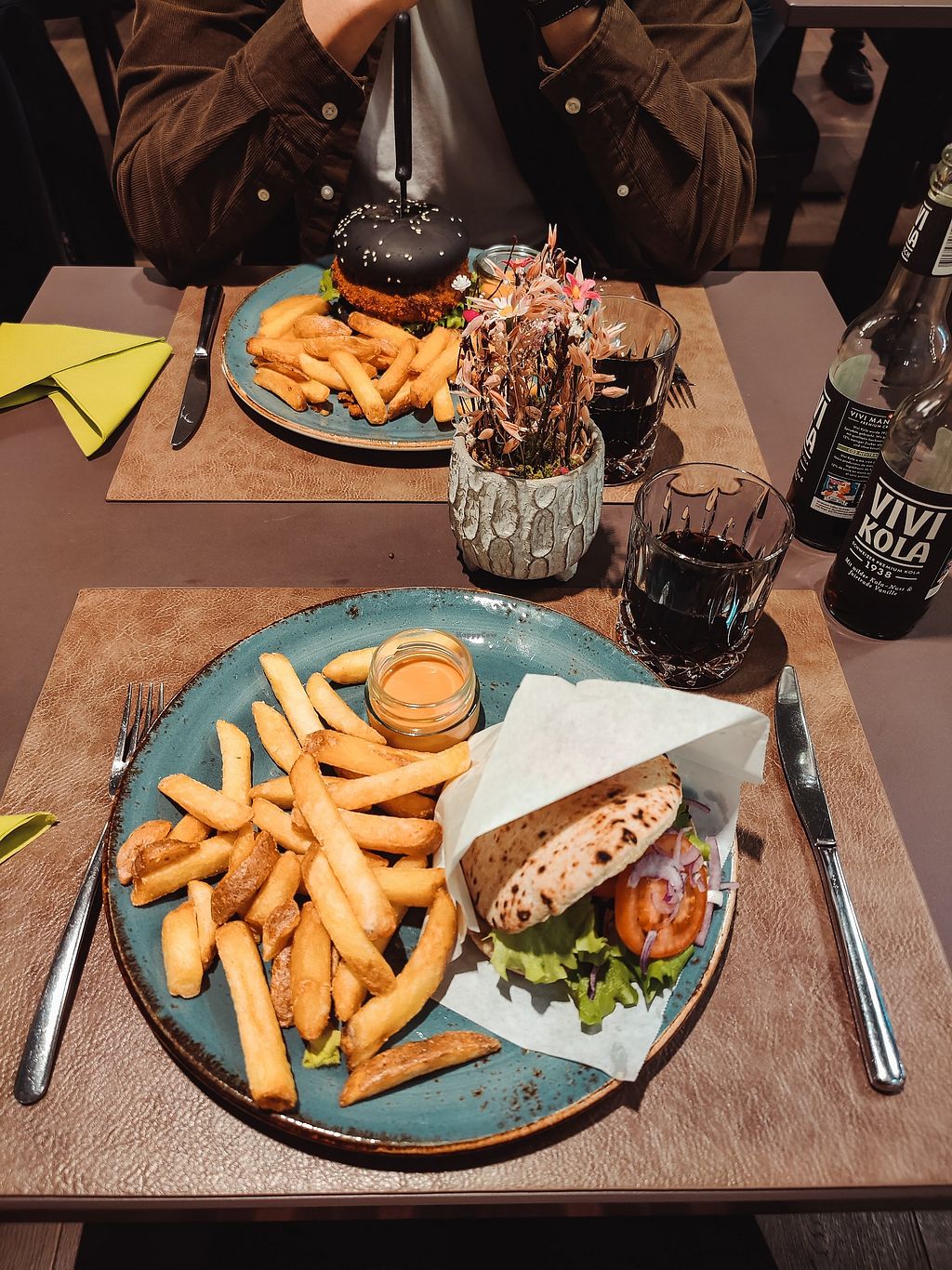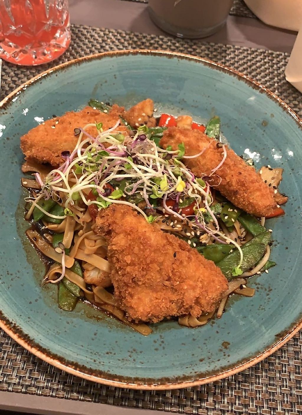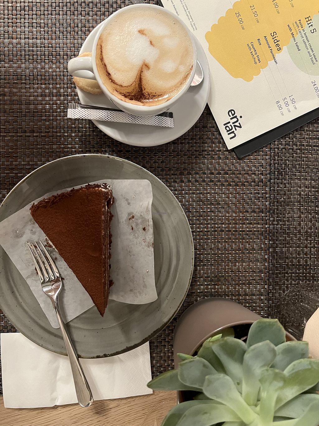 Bunter Salat, planted Chicken Curry mit Reis. Chai latte mit Reismilch…