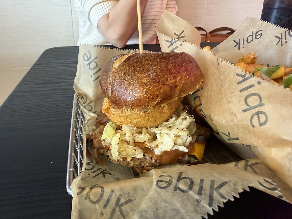Vegan bbq burger with Epik fries! The onion ring is so good and it's d…