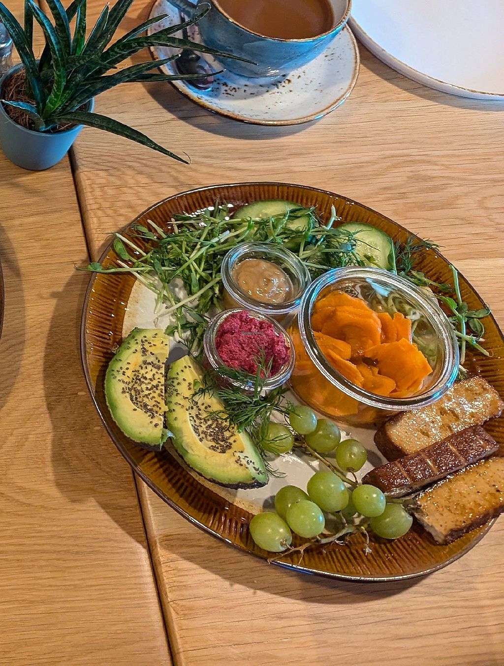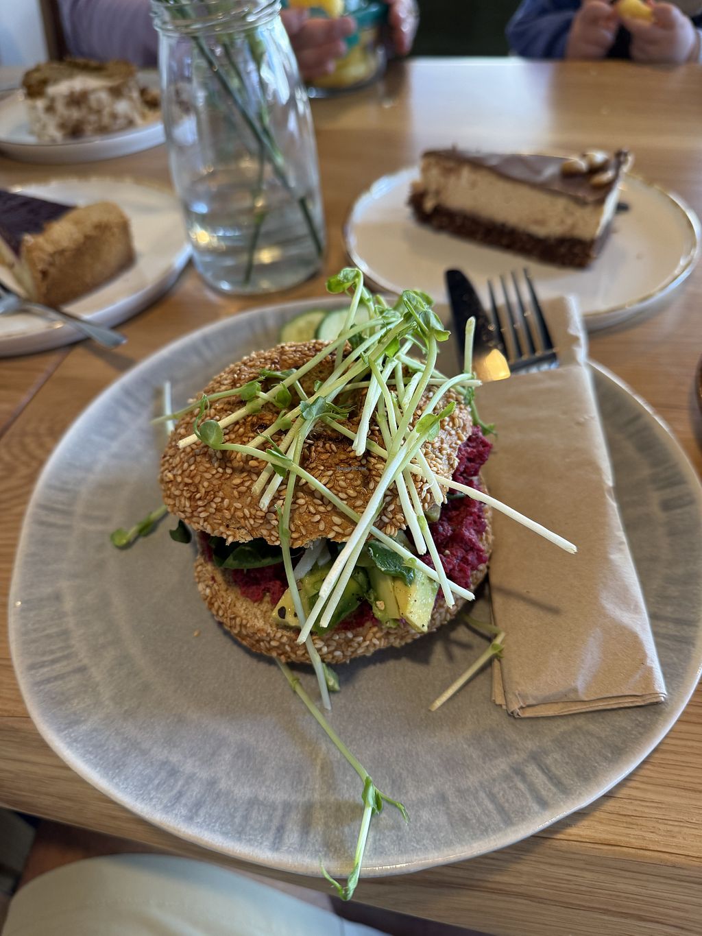 Hausgemachtes, veganes, frisches Frühstück mit frischem Gemüse, Aufstrichen und Kräutern. Auch tierisches und vegetarisches Frühstück dort erhältlich. Auch gibt es einen veganen Bagel oder einen veganen Croissant auf der Speisekarte #Veganuary