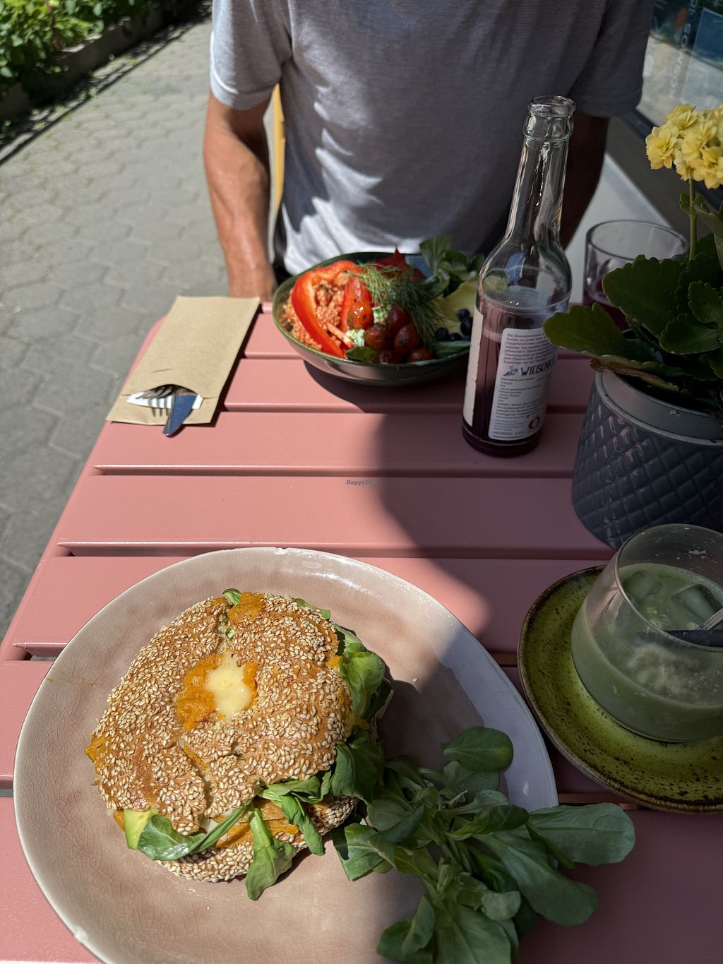 Wir hatten die vegane Platte und den veganen Bagel - beides super lecker. Die Kuchentheke ist komplett vegan😄