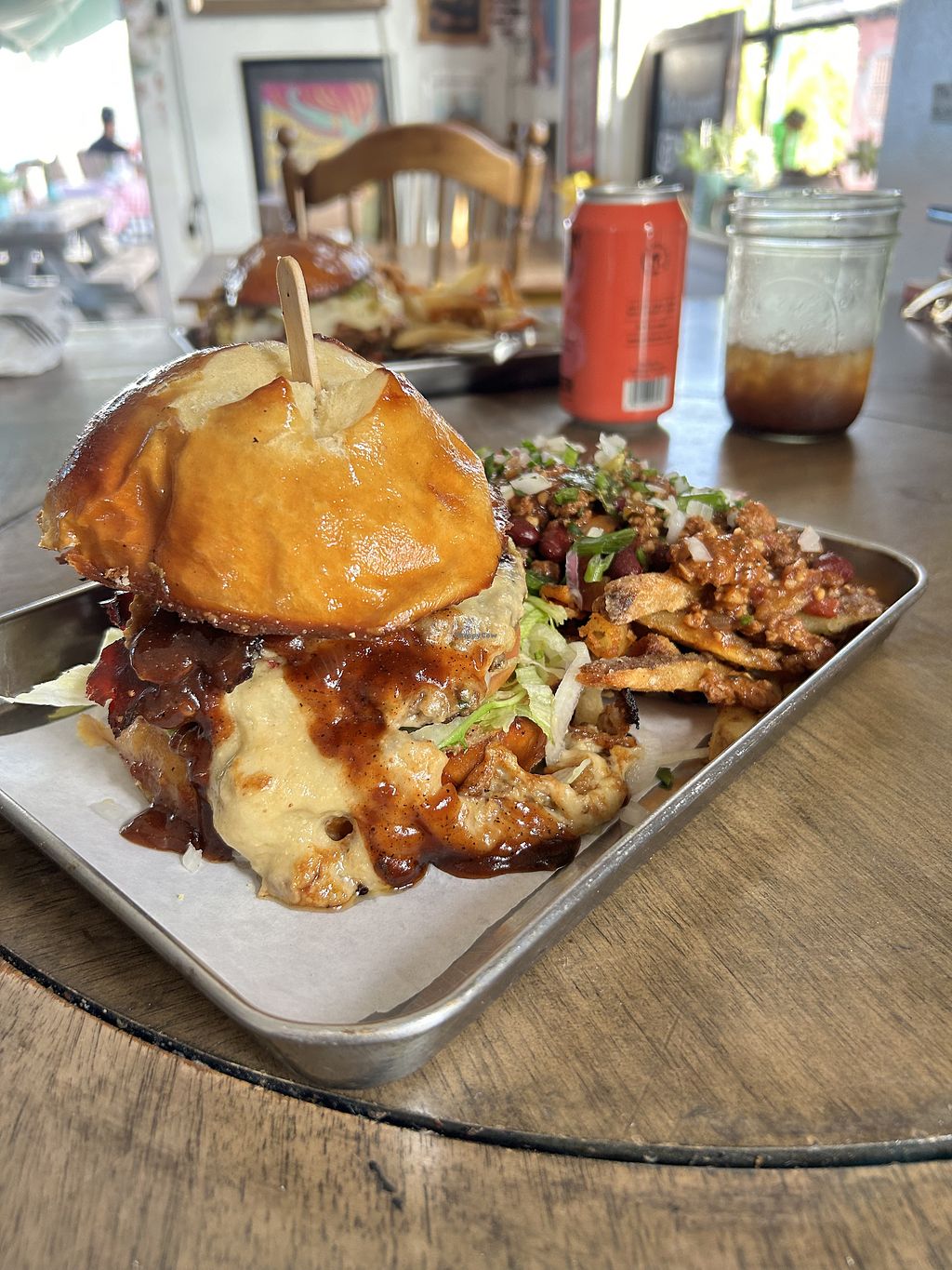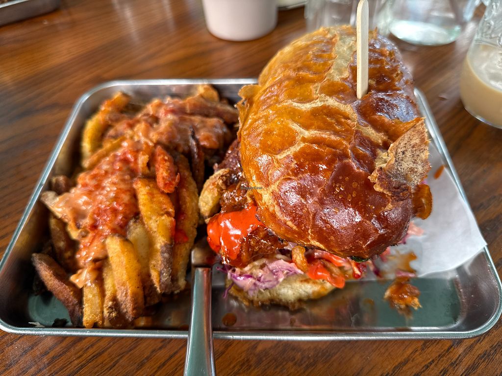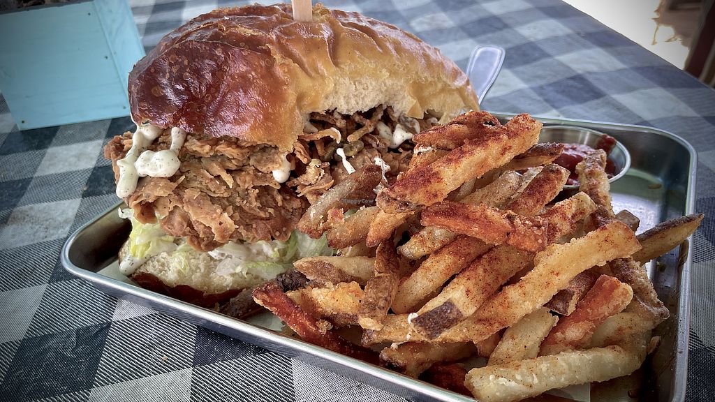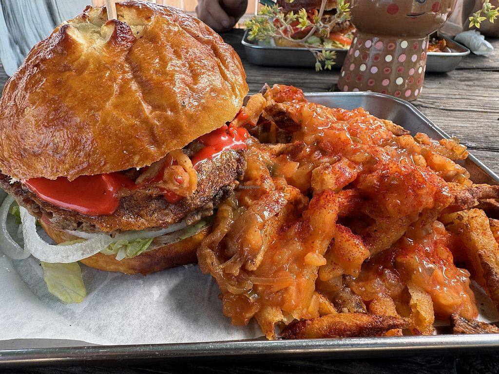 Holiday chick’en sandwich and monster style fries 🍟