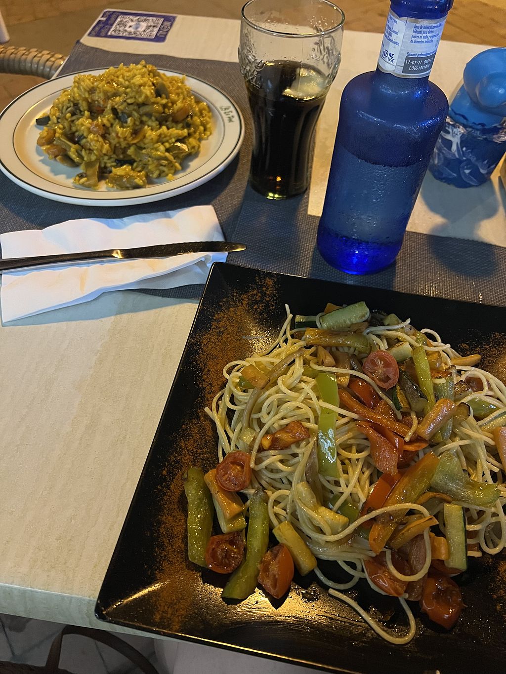 The atmosphere were cozy and with a view over the ocean and boats. We had the vegan paella and the spaghetti with vegetables. Both were really good but the vegan paella was incredibly tasty. Would recommend!