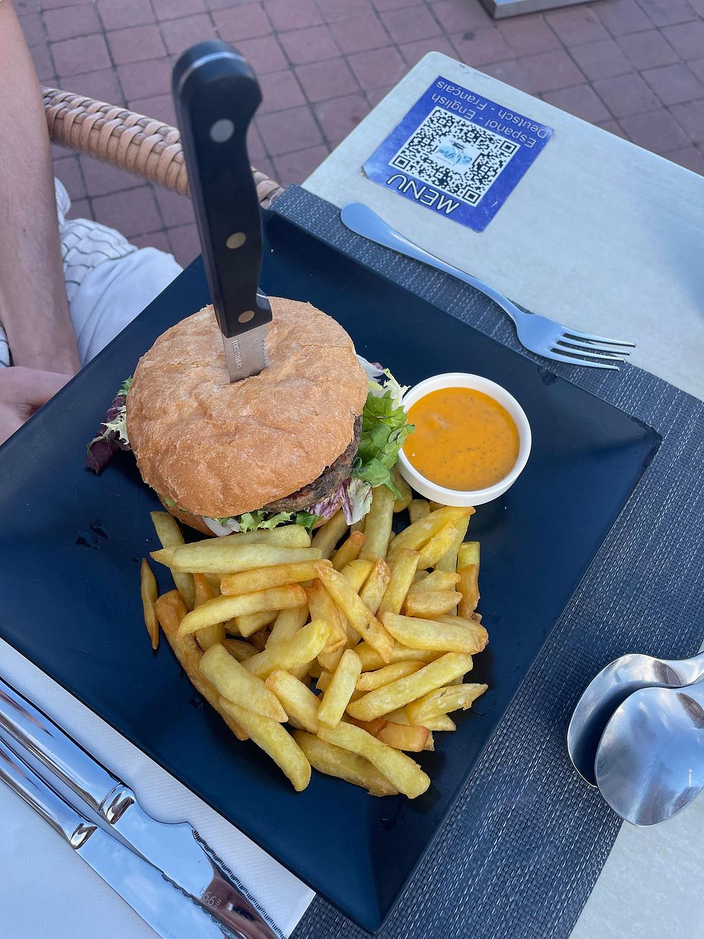 Die vegane Paella und der Burger sind sehr lecker und absolut empfehlenswert! Man sitzt schön am Hafen und hat eine tolle Sicht. Das Personal ist sehr freundlich und lustig, man wartet nicht lange auf das Essen.