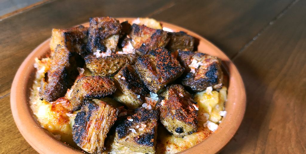 Una taberna genial que ofrece variedad de opciones veganas perfectas para compartir.