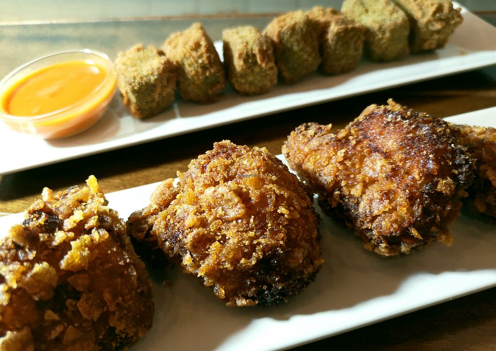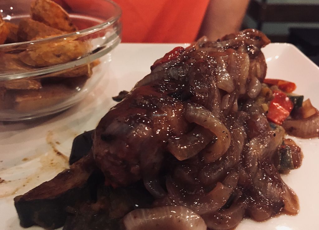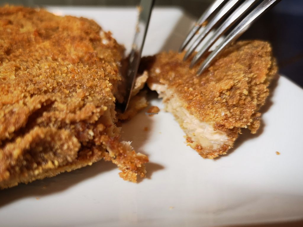 Me comí un cachopo cuando estuve allí, había visto que algunos sitios veganos ofrecen esta opción, pero dudaba un poco porque no soy el mayor fan de las fake meats hechas de soja, aún así le dí una oportunidad y estaba muy rico, me lo esperaba más seco, pero estaba muy jugoso, así que salí contento. Llena un montón y a un precio atractivo. El sitio es muy grande y los camareros amables