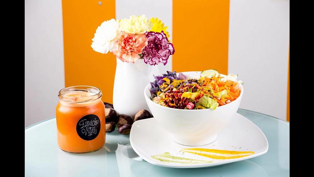 Lacto Ovo Organic Raw Fast food Salad bar Juice bar Delivery Mexican Non-veg Serves meat, vegan options available. Has vegan choices, including a salad bar, wraps, fruit salad and natural juices. Reported closed, Feb 2020. More