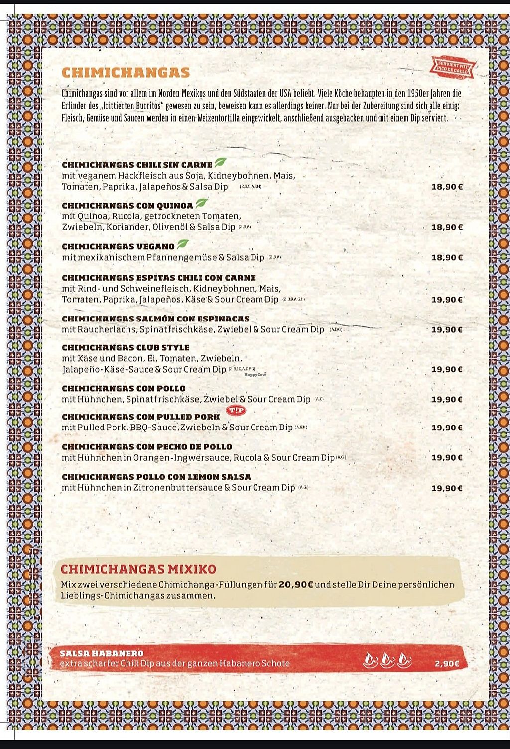 Serves meat, vegan options available. Mexican restaurant with vegan options, including guacamole, enchiladas, enchiladas chili sin carne, chimichangas chili sin carne, chimichangas quinoa, and vegan chimichanga. Open Mon-Thu 17:00-22:00, Fri 17:00-23:00, Sat 12:00-23:00, Sun 09:00-22:00.