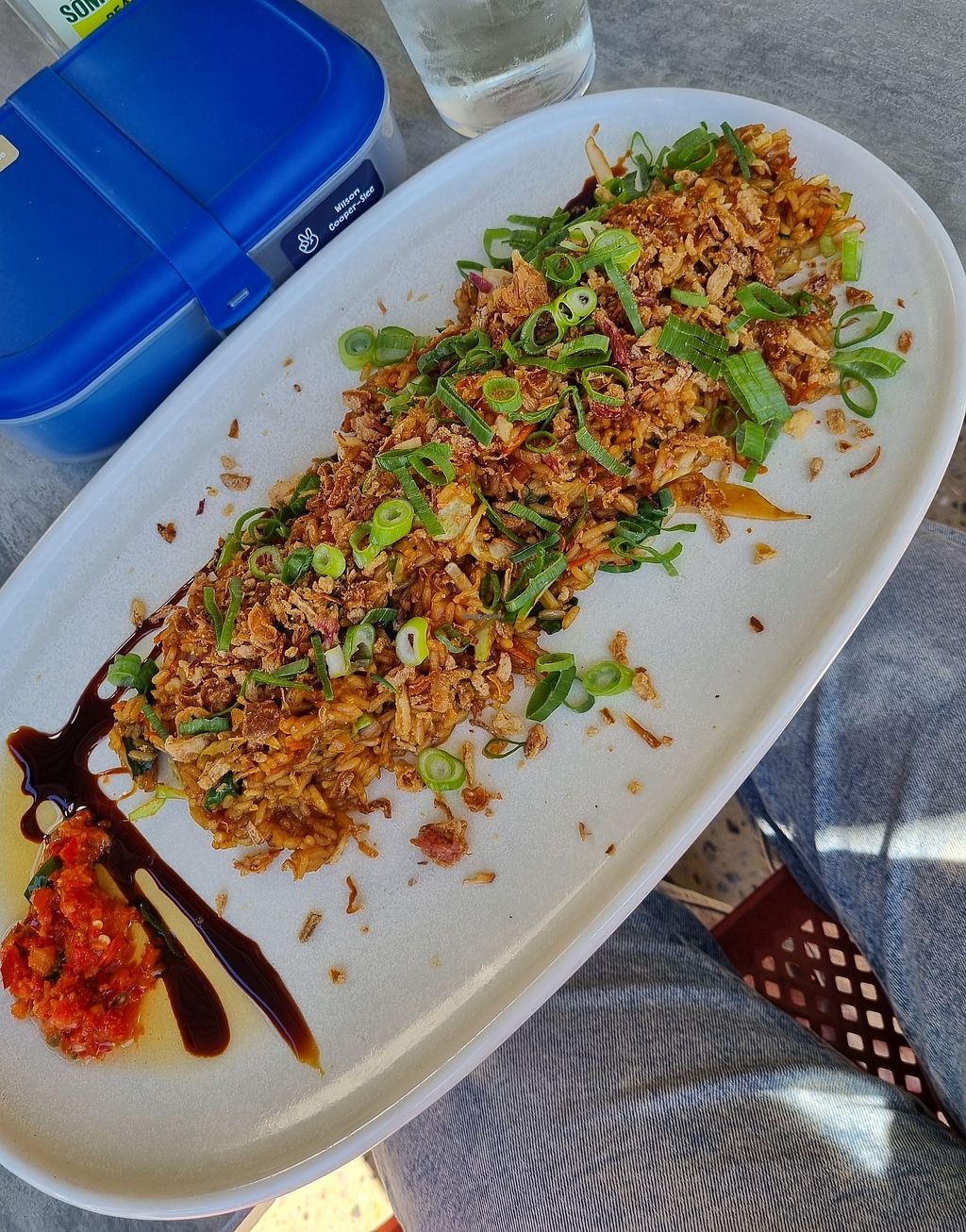 I had the nasi Goreng and hot chips. It was a large portion. The gated kids playground is a bonus!! Would pop by again.