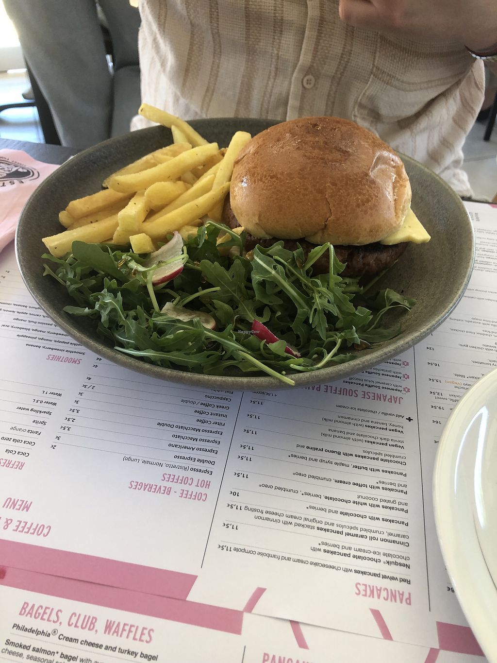 Mixed green salad and beyond burger