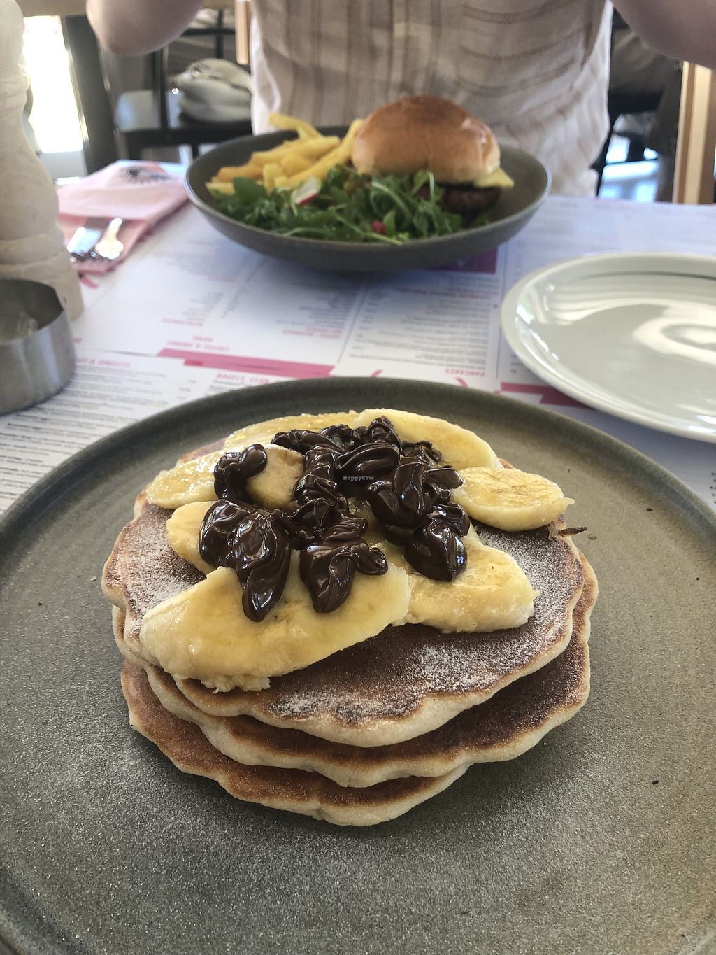 Vegan pancakes met chocola en banaan