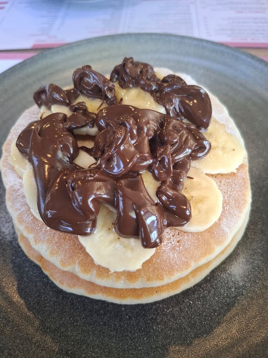 Banana and cinnamon pancakes, honey substituted for maple syrup (serve…