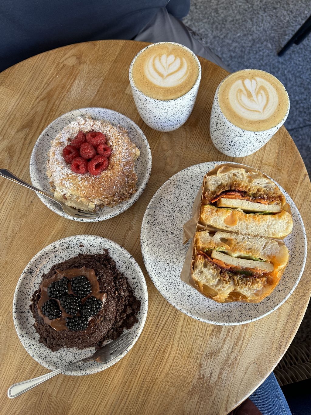 Really good coffee, and wonderful selection of sweets and savoury sandwiches. Lovely interior seating and friendly staff