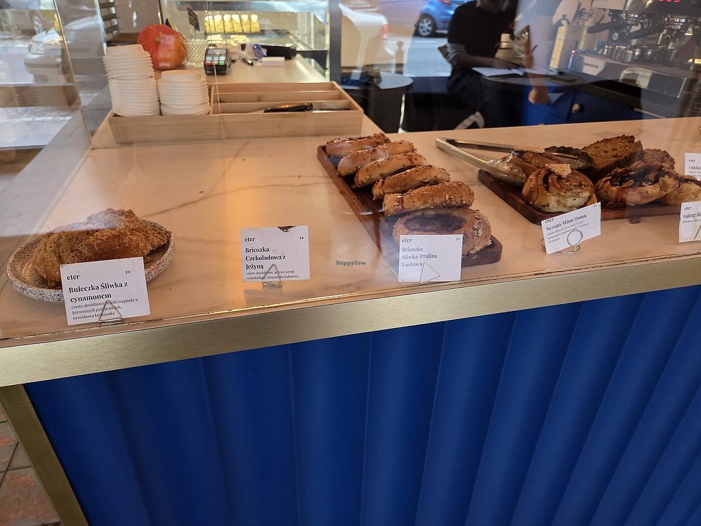 Read moreThe pastries are absolutely incredible- baked to perfection. I also tried a bagel which had a nice filling ( a little messy to eat). My friend who is not vegan really enjoyed them. I also had a focaccia sandwich- beautiful bread and nice filling. We both also had the double baked croissant with blueberry filling - amazing. This is a must visit for vegans visiting Warsaw.