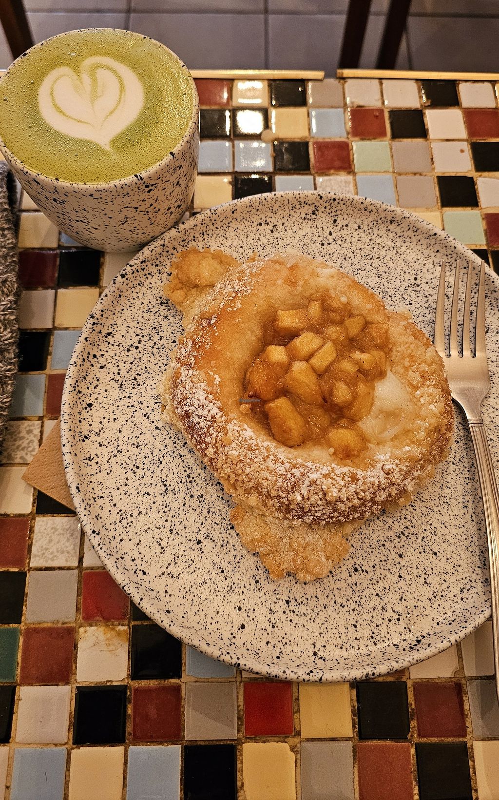 Food good and service ok. At the counter staff were nice but customers had to clean the table from previous customer if they wanted to sit. Staff just left dirty cups and plates there. Matcha was good. It is a good cafe with alot of food options.