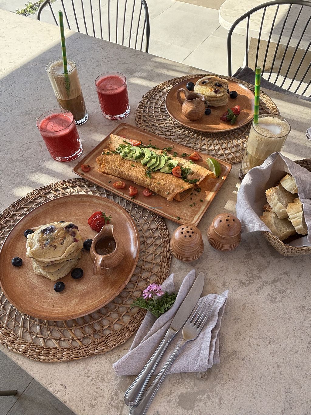 We’re in the middle of a 10 night stay at Ethos Vegan Retreat. Everyday a different vegan breakfast is brought to our private outdoor dining area. There is usually a sweet and savoury option, all home made by the wonderful owner, Artemis. Dishes have included pancakes, crepes, avocado toast, spinach pie, lentil wraps, tofu, chickpea and potato omelette, bougatsa, apple pie and more, served with fresh orange or watermelon juice, fresh bread and condiments. We wake up excited for breakfast everyday ❤️ if you’re looking for vegan accommodation, you can’t get better than this!
