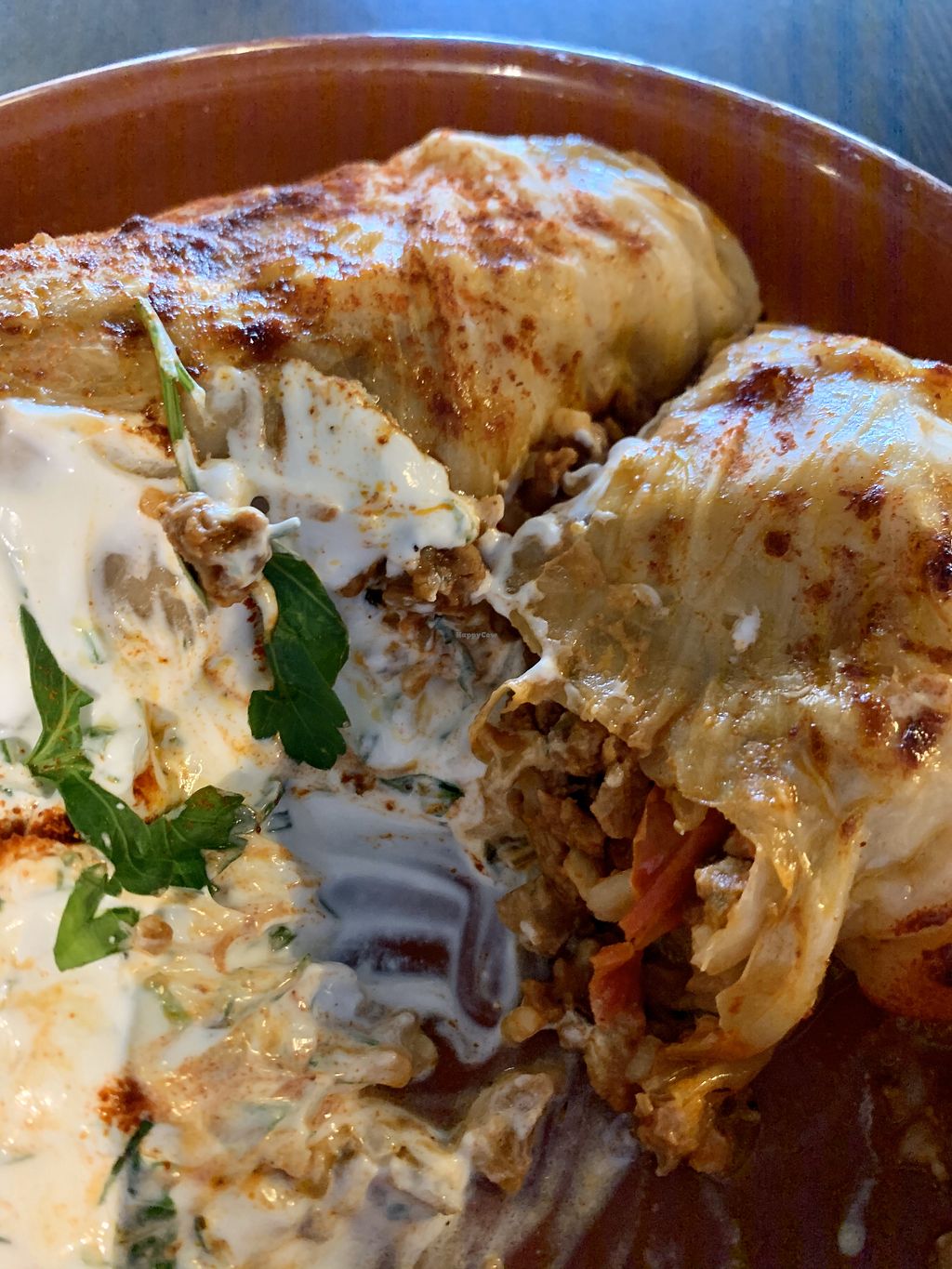 The stuffed cabbages were oversalted so badly that we left it behind.
