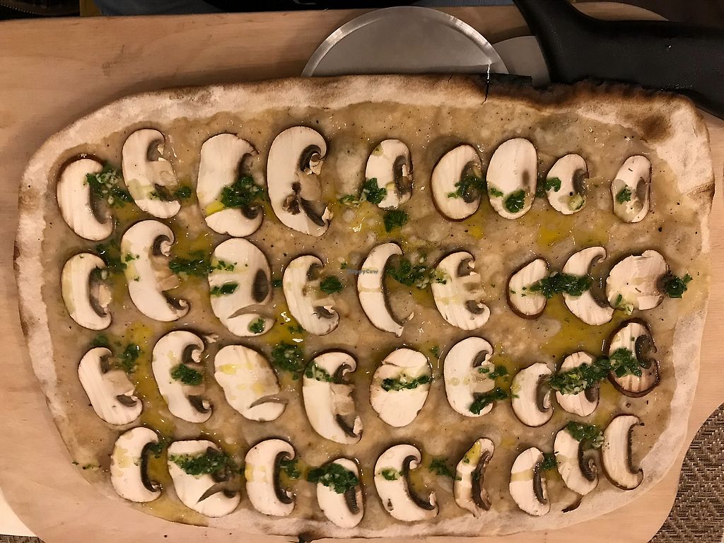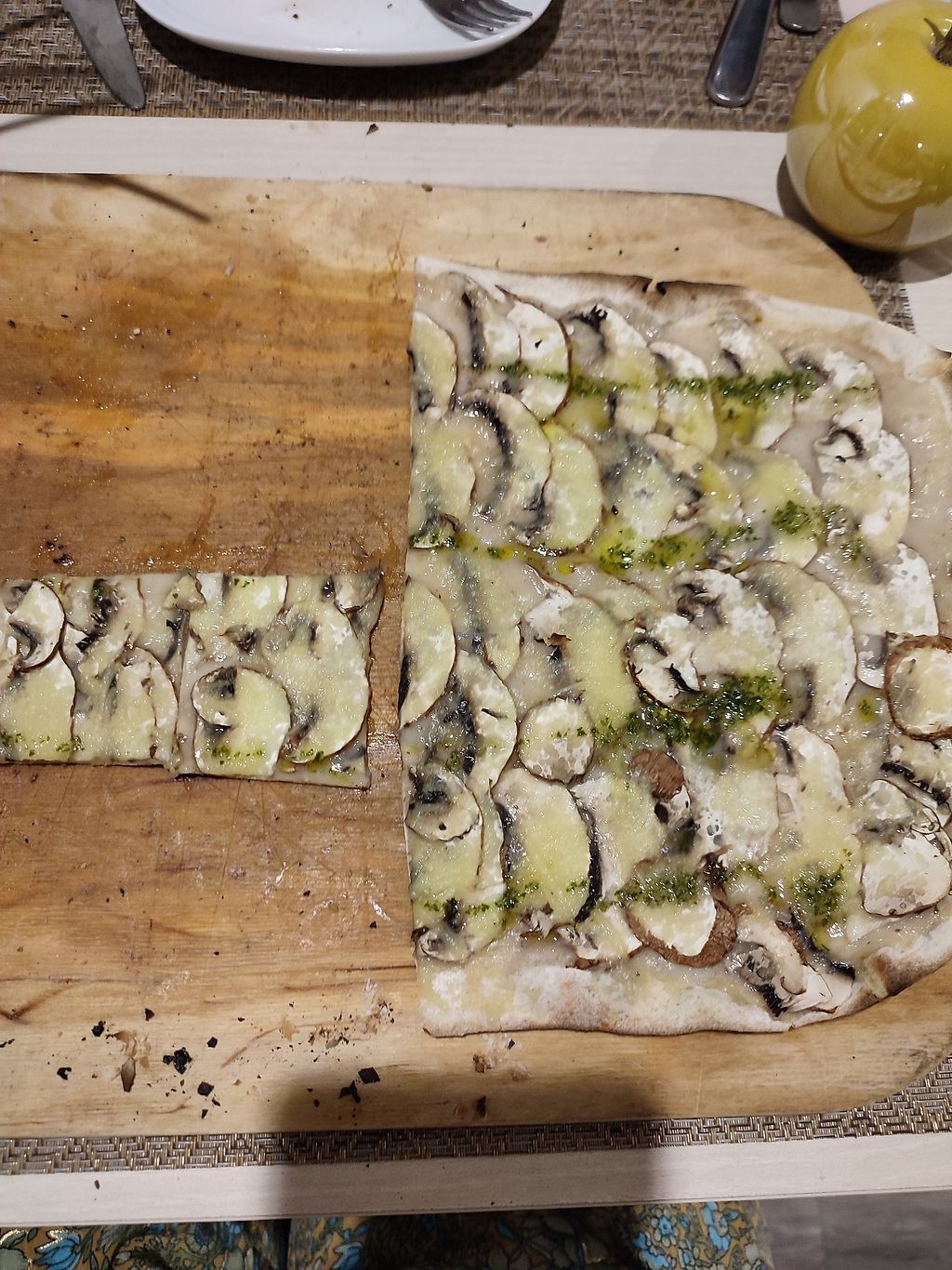 Tarte flambée tradicional (cebolla caramelizada, tofu ahumado y queso)…