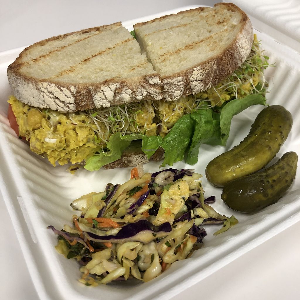 Eve cafe in Simons has a good variety of vegan options (half their menu!) and so far everything I have tried has been delicious and well priced! The chickpea smash sandwich is amazing! They also have good coffee. It is a stylish cafe to sit in and the staff is really nice!